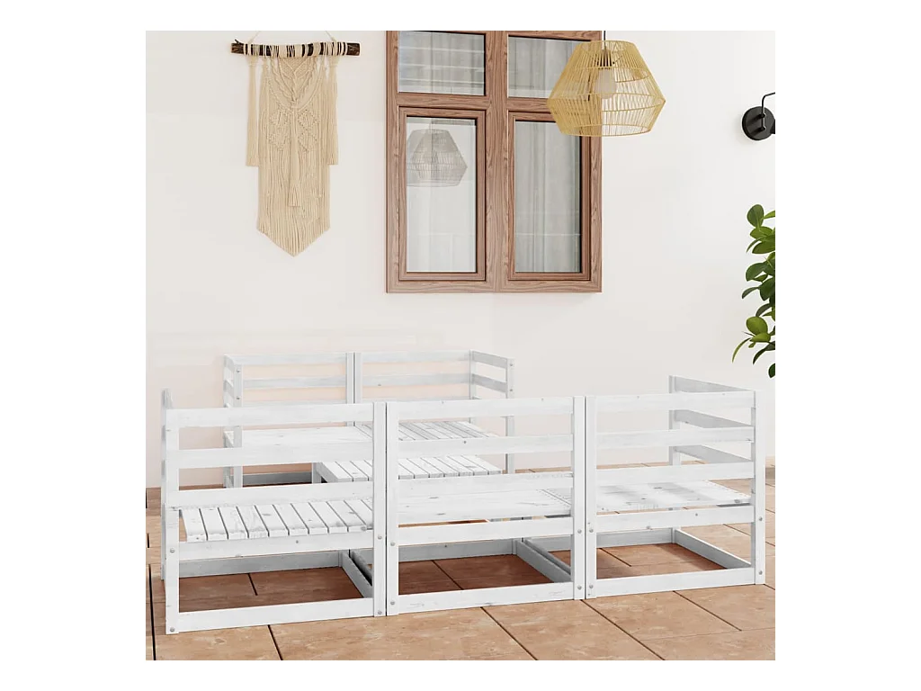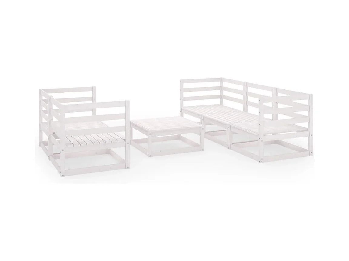 6-tlg. Garten-Sitzgruppe: Sofa + Tisch | Garten-Lounge-Set Weiß Massivholz Kiefer -GKD425797