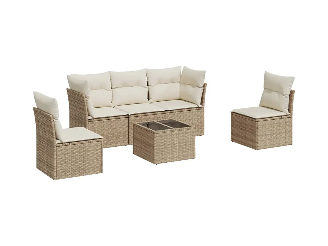 6-tlg. Garten-Sofagarnitur,Gartenmöbel-Set mit Kissen Beige Poly Rattan -gkd140569