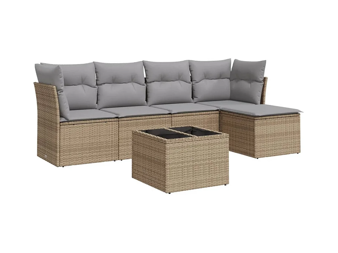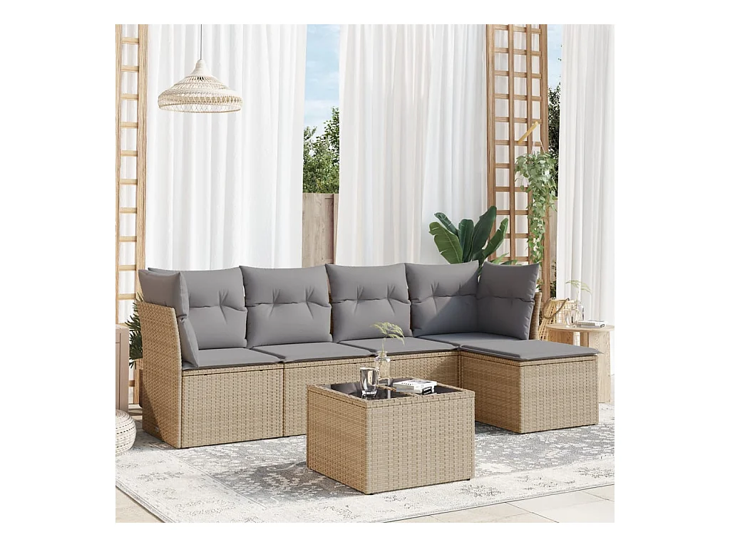 6-tlg. Garten-Sofagarnitur,Gartenmöbel-Set mit Kissen Beige Poly Rattan -gkd638910