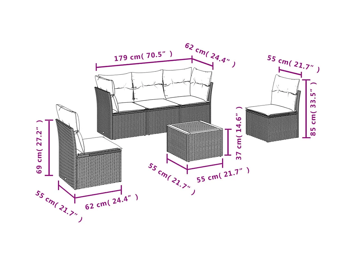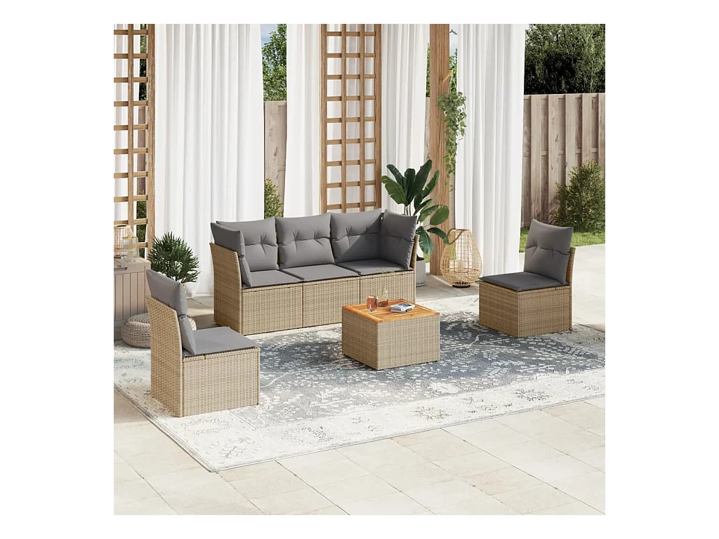 6-tlg. Garten-Sofagarnitur,Gartenmöbel-Set mit Kissen Beige Poly Rattan -gkd815468