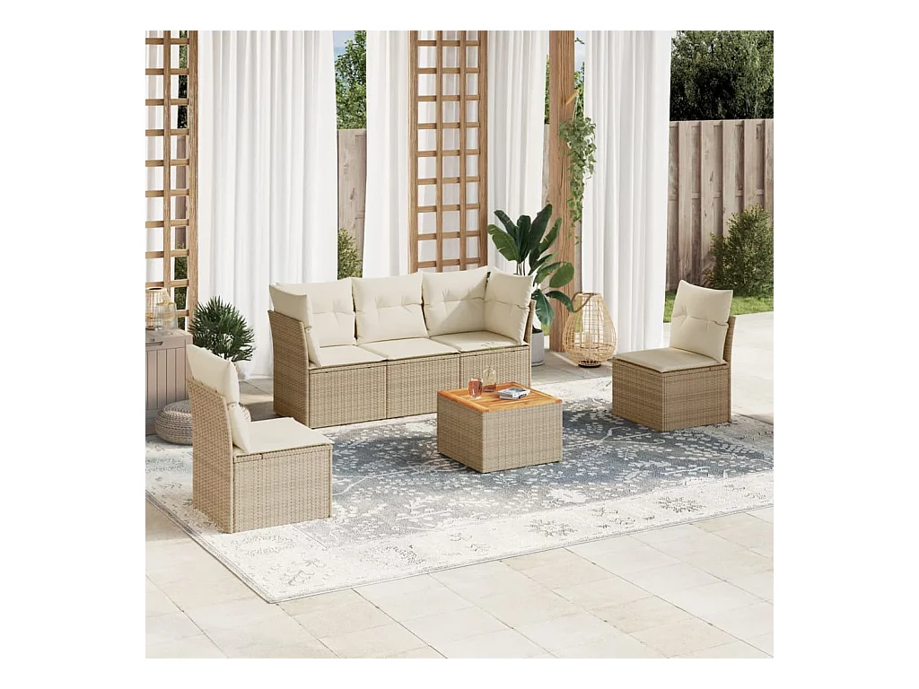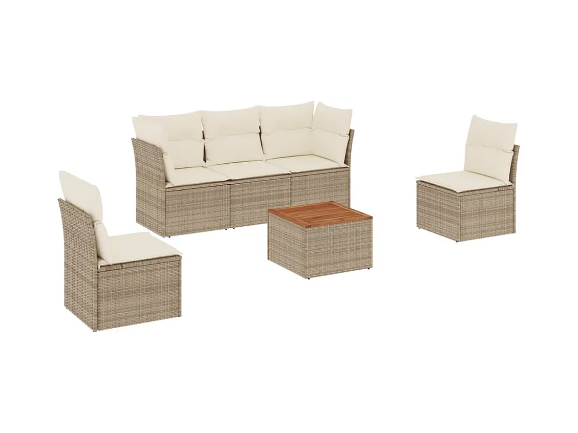 6-tlg. Garten-Sofagarnitur,Gartenmöbel-Set mit Kissen Beige Poly Rattan -gkd977887