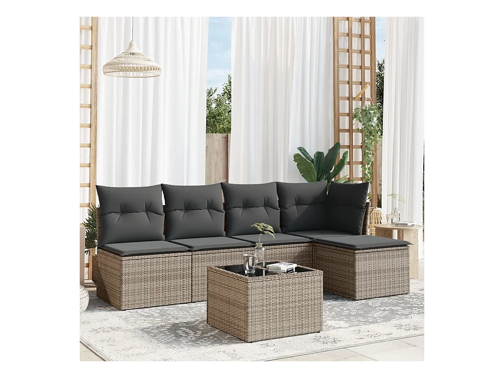6-tlg. Garten-Sofagarnitur,Gartenmöbel-Set mit Kissen Grau Poly Rattan -gkd107886