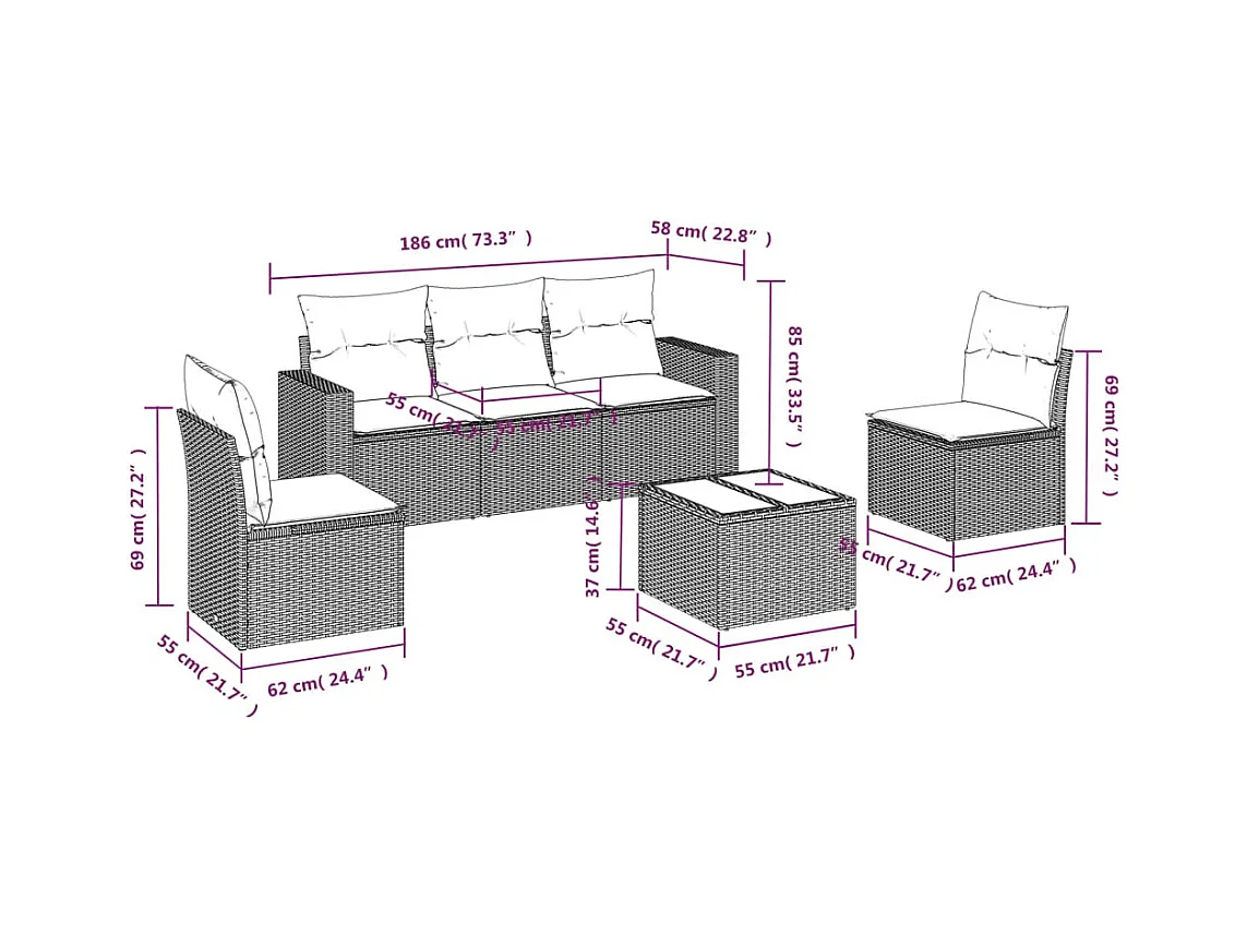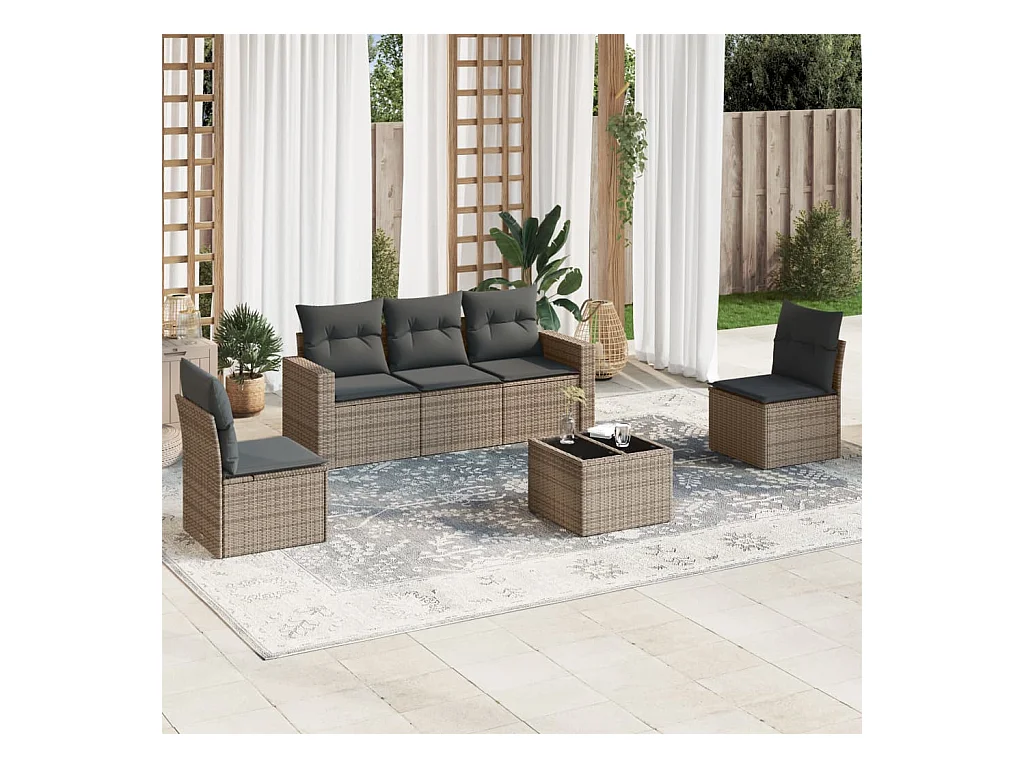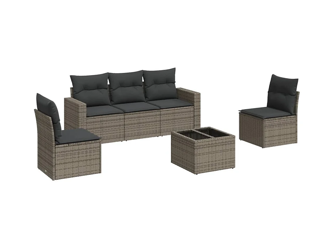 6-tlg. Garten-Sofagarnitur,Gartenmöbel-Set mit Kissen Grau Poly Rattan -gkd117728