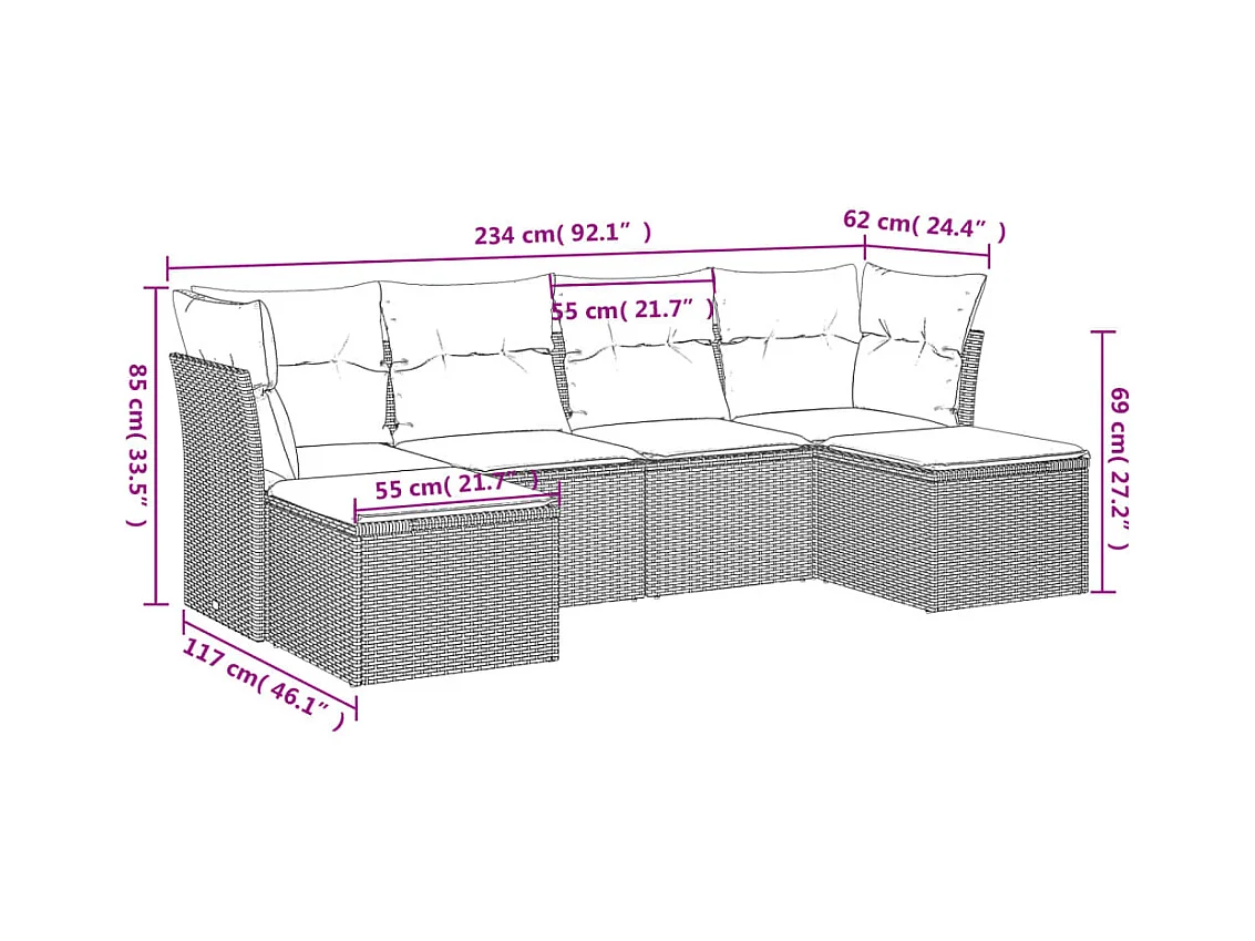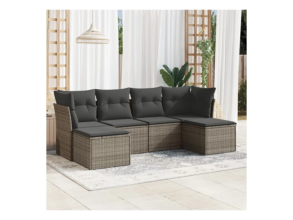 6-tlg. Garten-Sofagarnitur,Gartenmöbel-Set mit Kissen Grau Poly Rattan -gkd301576