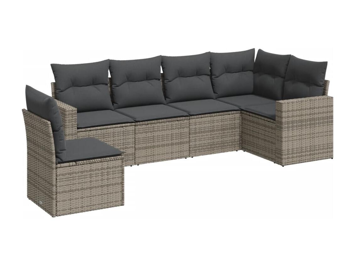 6-tlg. Garten-Sofagarnitur,Gartenmöbel-Set mit Kissen Grau Poly Rattan -gkd629795