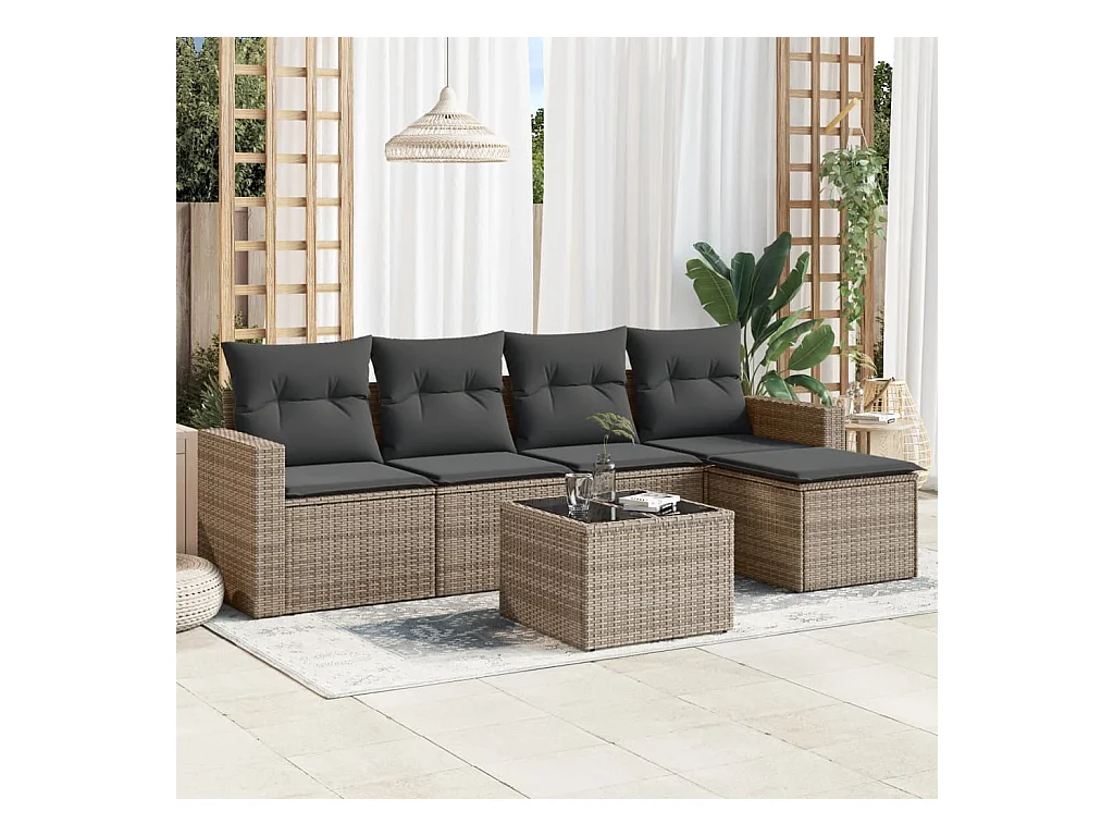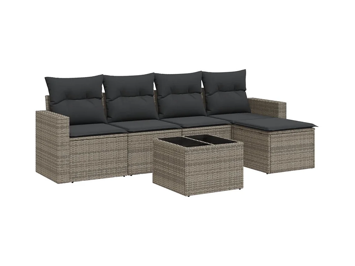 6-tlg. Garten-Sofagarnitur,Gartenmöbel-Set mit Kissen Grau Poly Rattan -gkd728888