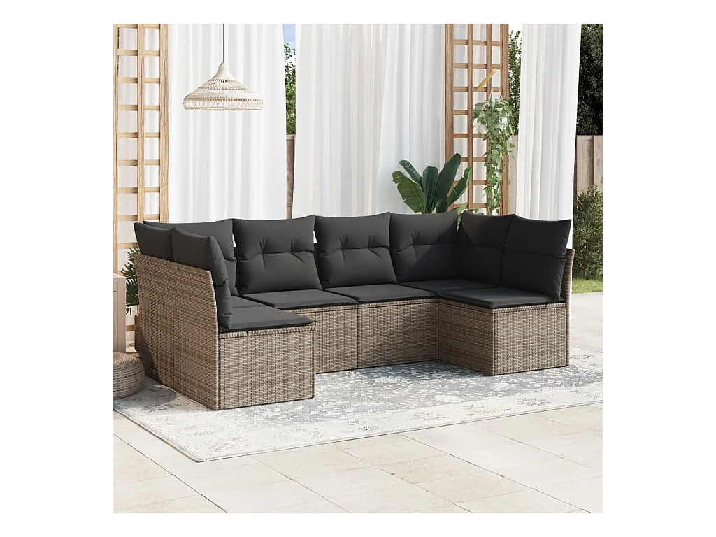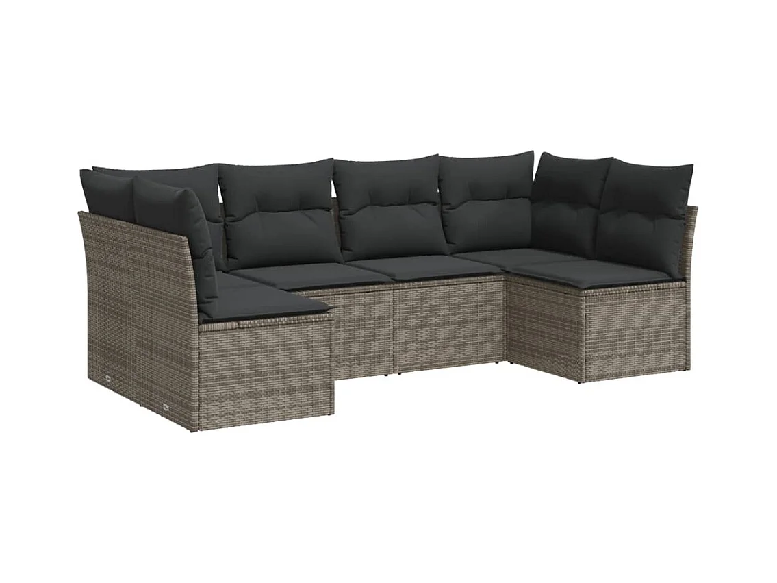 6-tlg. Garten-Sofagarnitur,Gartenmöbel-Set mit Kissen Grau Poly Rattan -gkd955388