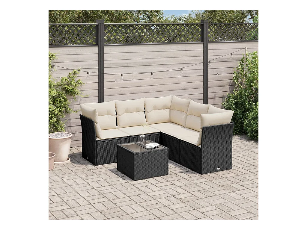 6-tlg. Garten-Sofagarnitur,Gartenmöbel-Set mit Kissen Schwarz Poly Rattan -gkd400731