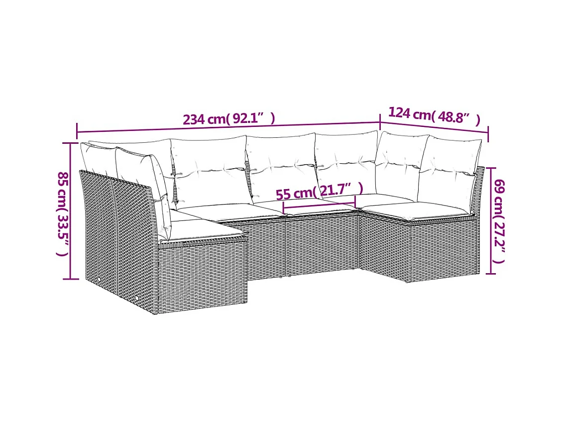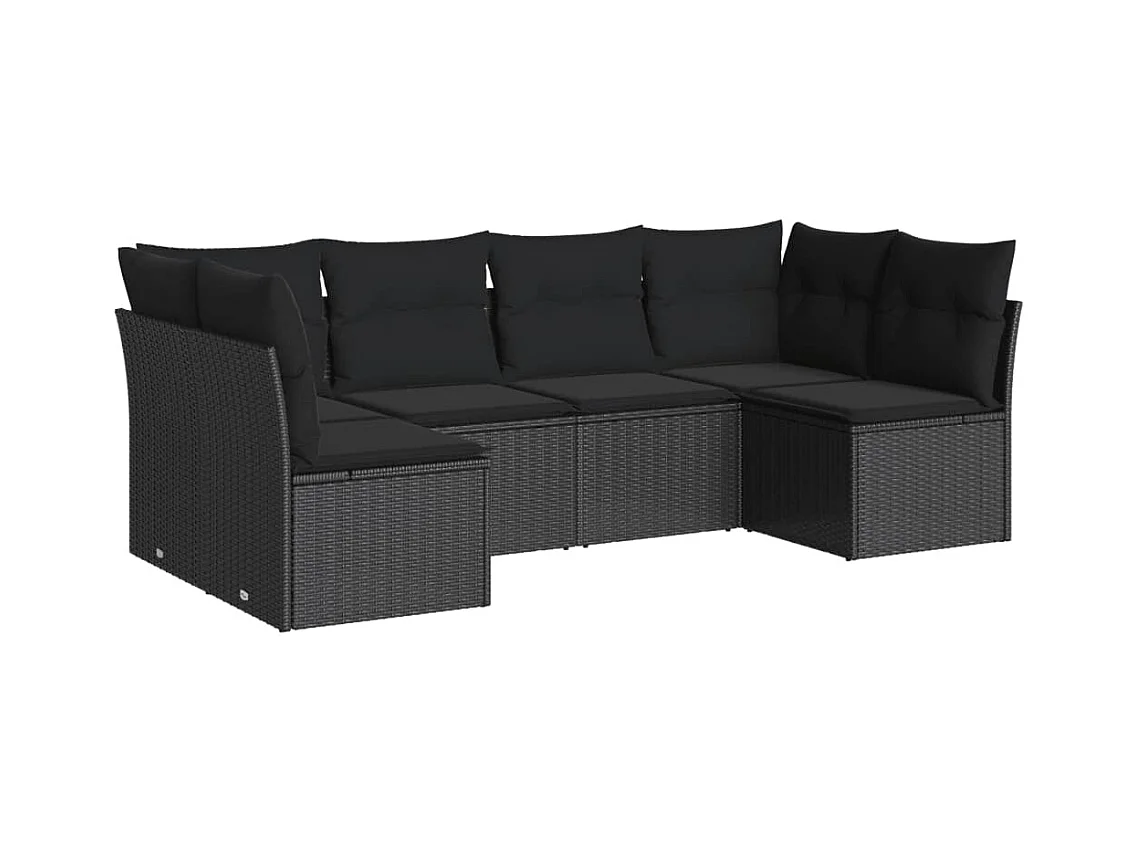 6-tlg. Garten-Sofagarnitur,Gartenmöbel-Set mit Kissen Schwarz Poly Rattan -gkd429053