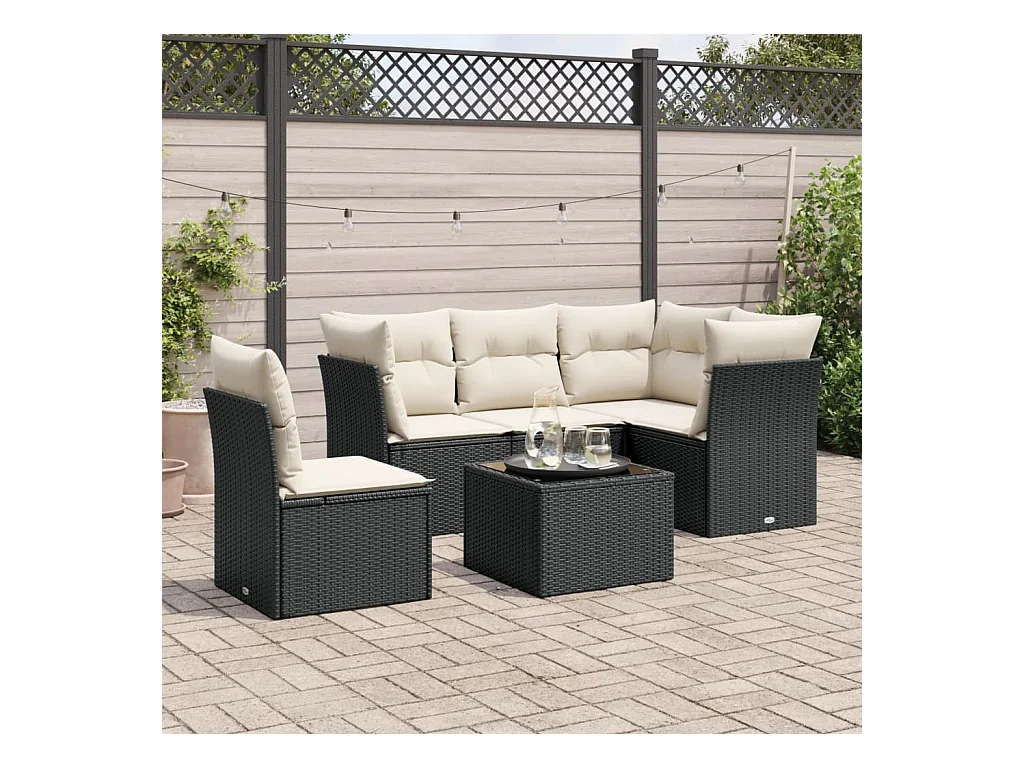 6-tlg. Garten-Sofagarnitur,Gartenmöbel-Set mit Kissen Schwarz Poly Rattan -gkd430561