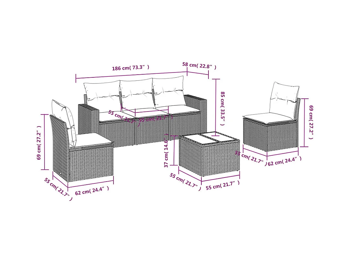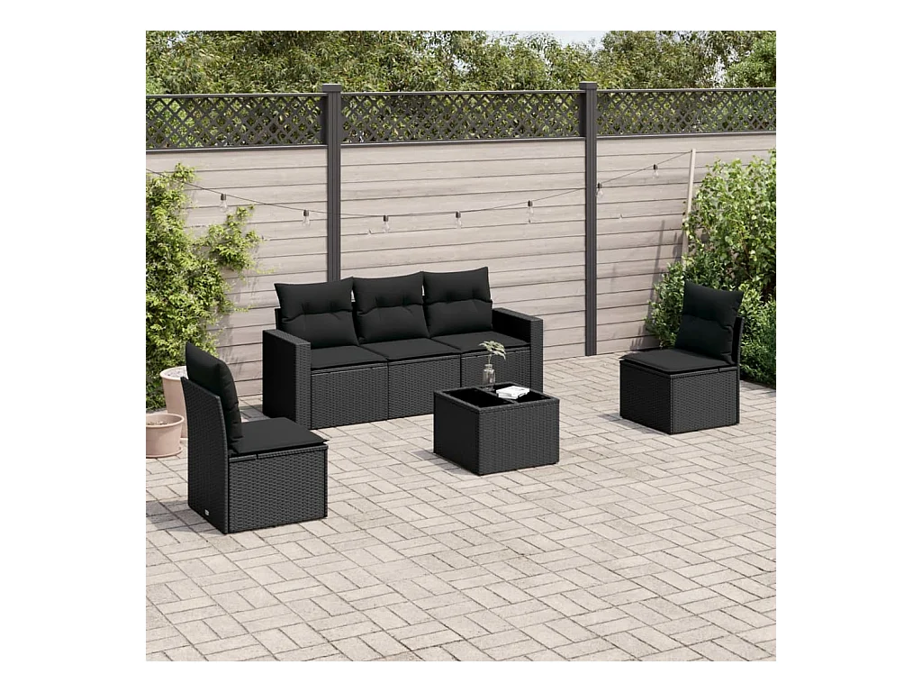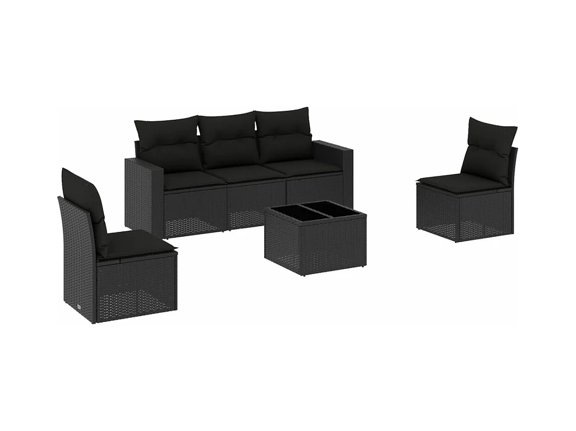 6-tlg. Garten-Sofagarnitur,Gartenmöbel-Set mit Kissen Schwarz Poly Rattan -gkd455340
