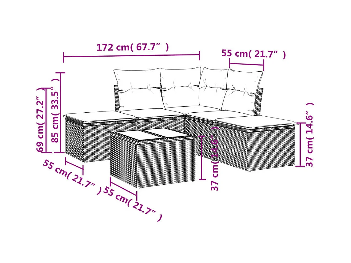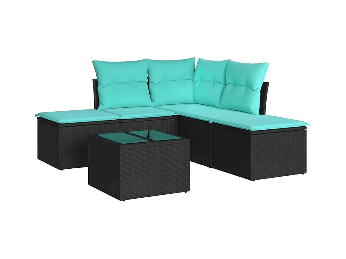 6-tlg. Garten-Sofagarnitur,Gartenmöbel-Set mit Kissen Schwarz Poly Rattan -gkd468381