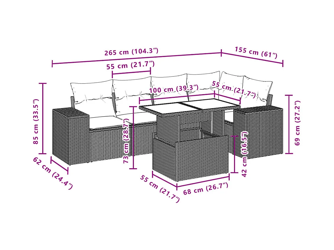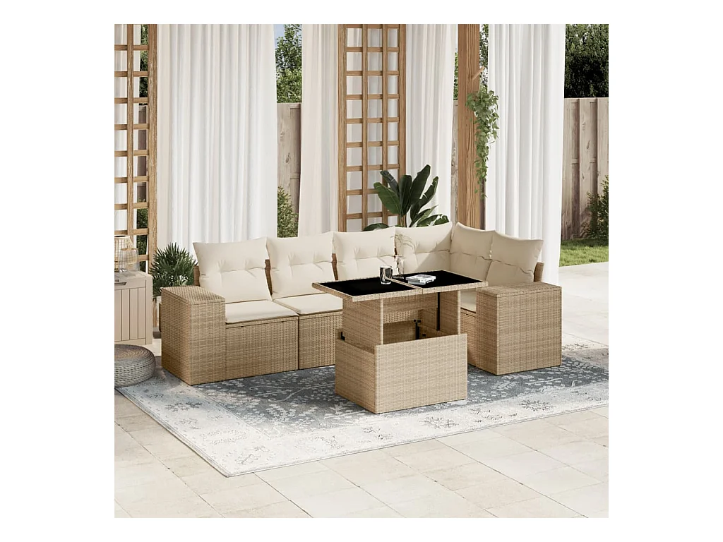 6-tlg. Garten-Sofagarnitur mit Kissen Beige Poly Rattan