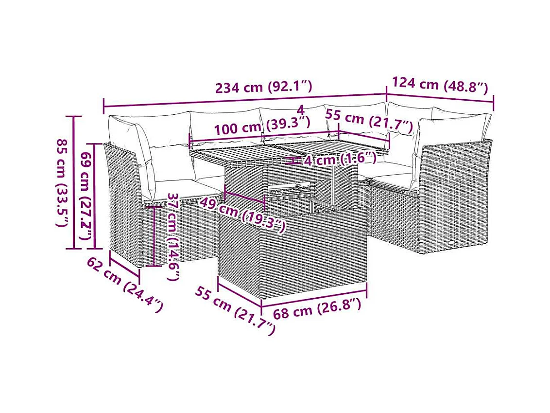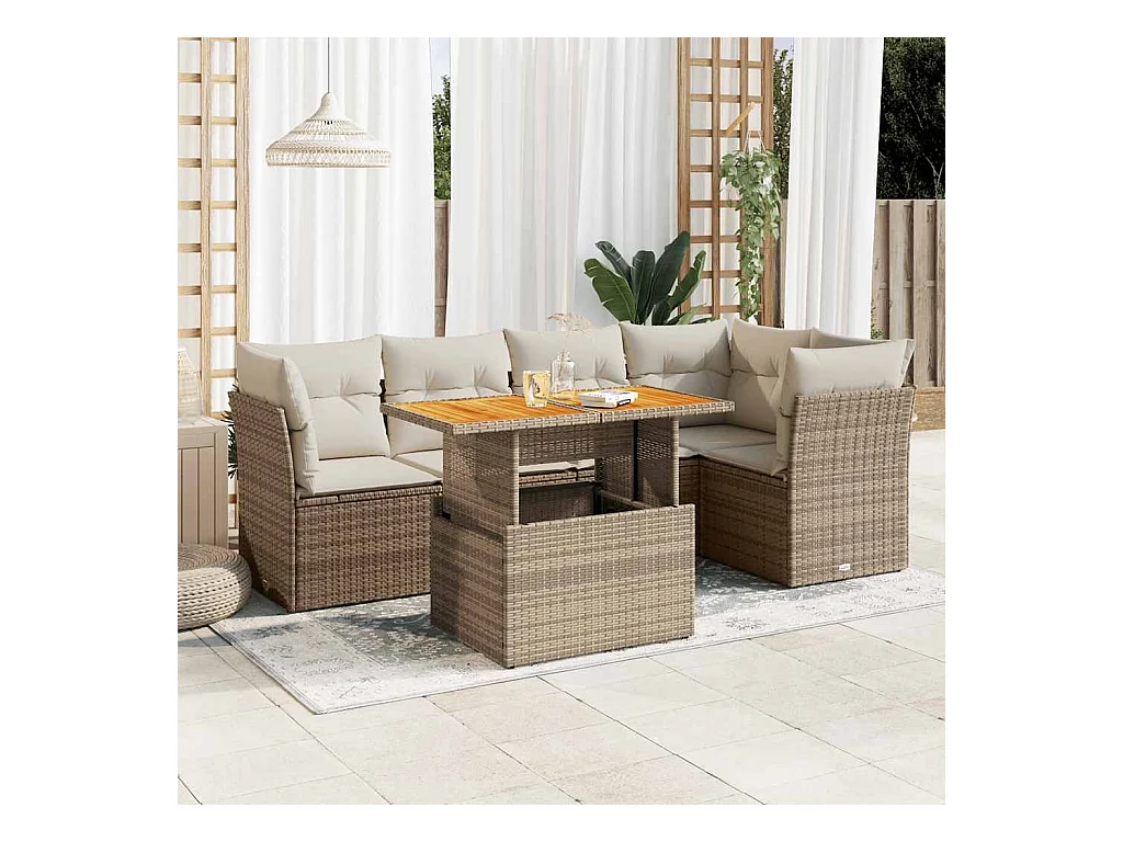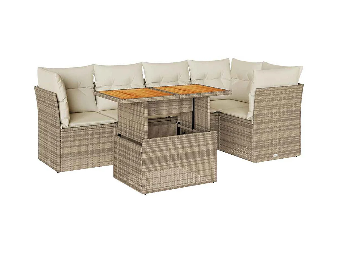 6-tlg. Garten-Sofagarnitur mit Kissen Beige Poly Rattan