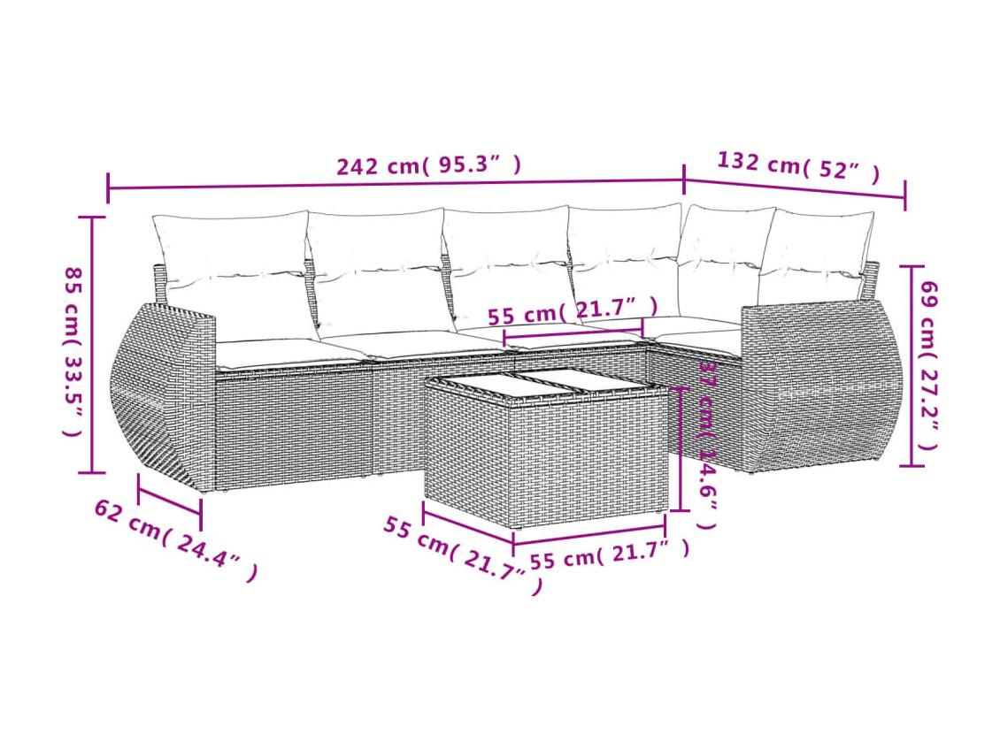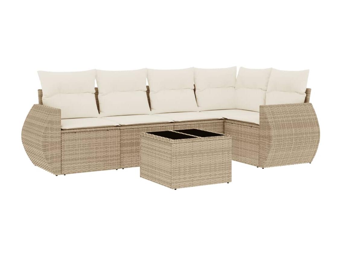 6-tlg. Garten-Sofagarnitur mit Kissen Beige Poly Rattan