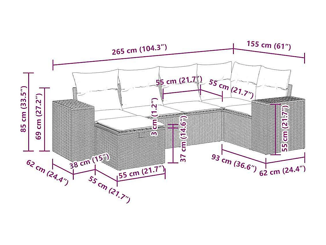 6-tlg. Garten-Sofagarnitur mit Kissen Braun Poly Rattan