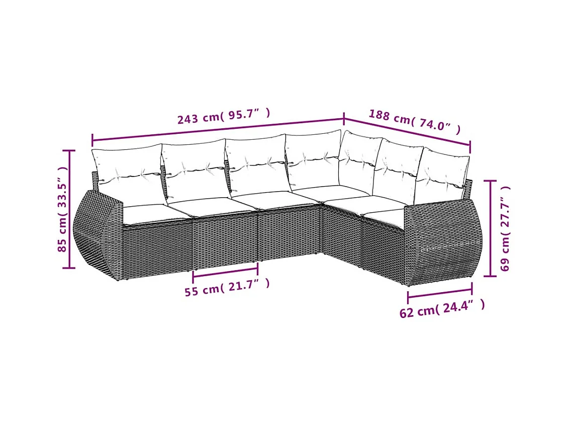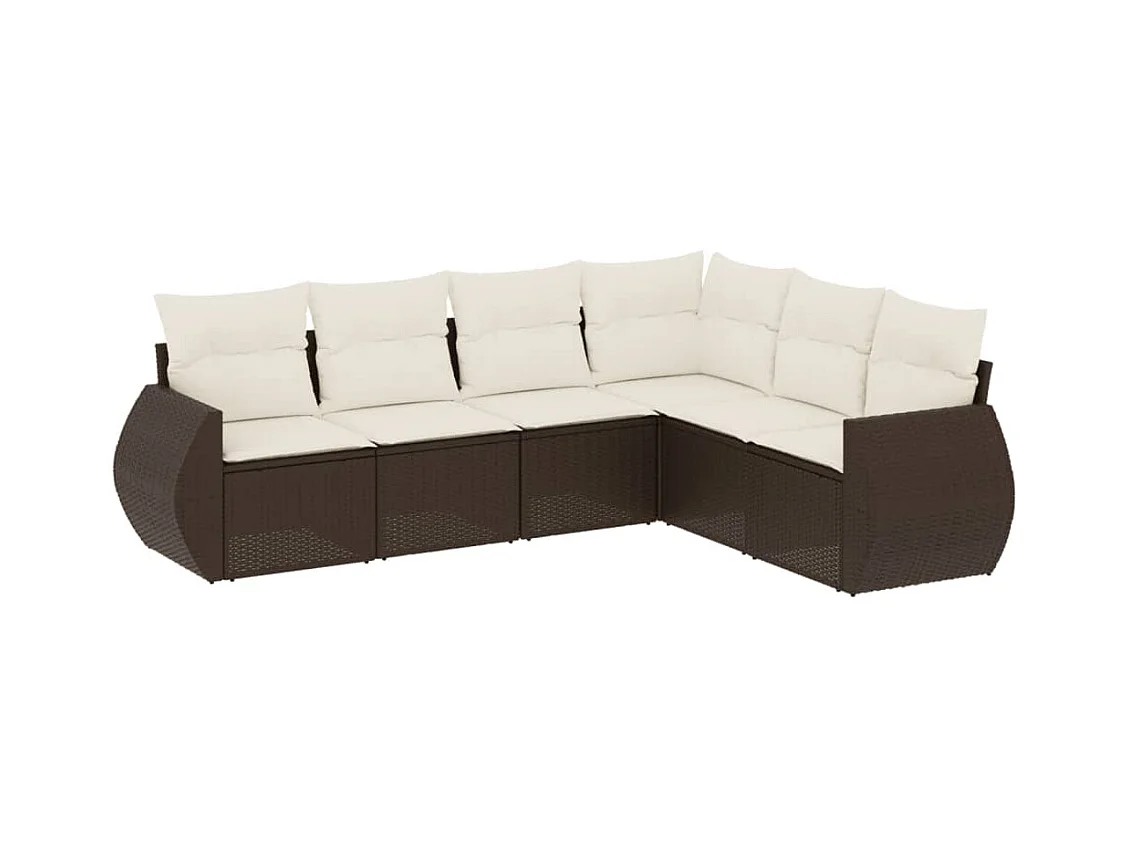 6-tlg. Garten-Sofagarnitur mit Kissen Braun Poly Rattan