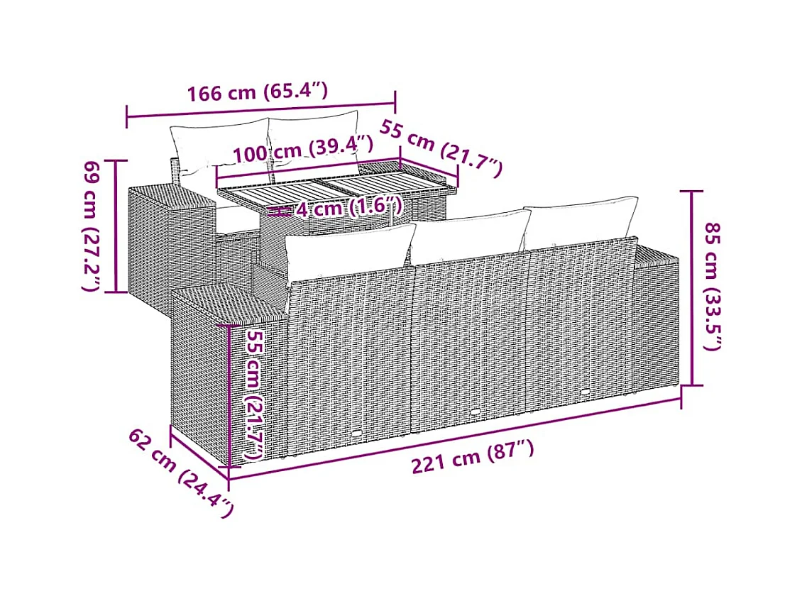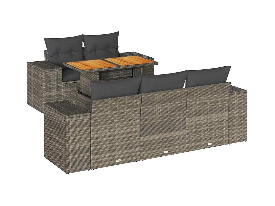 6-tlg. Garten-Sofagarnitur mit Kissen Grau Poly Rattan