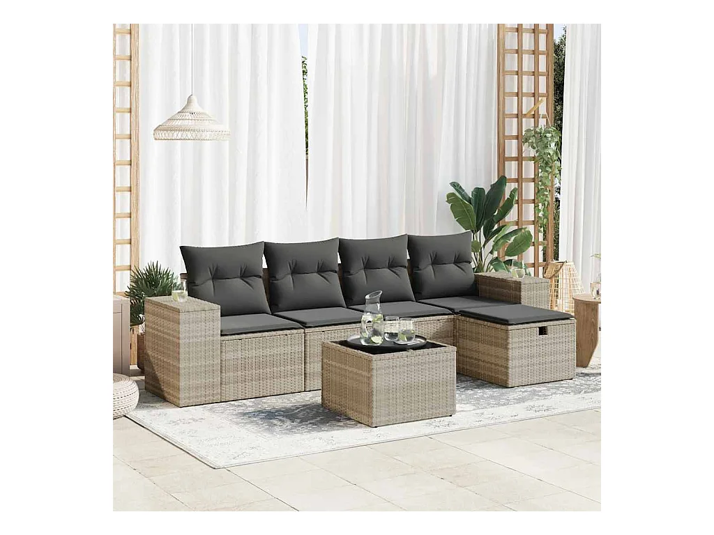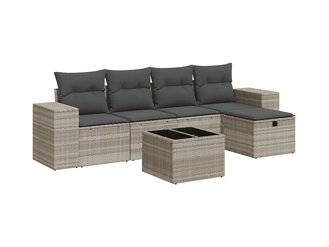 6-tlg. Garten-Sofagarnitur mit Kissen Hellgrau Poly Rattan