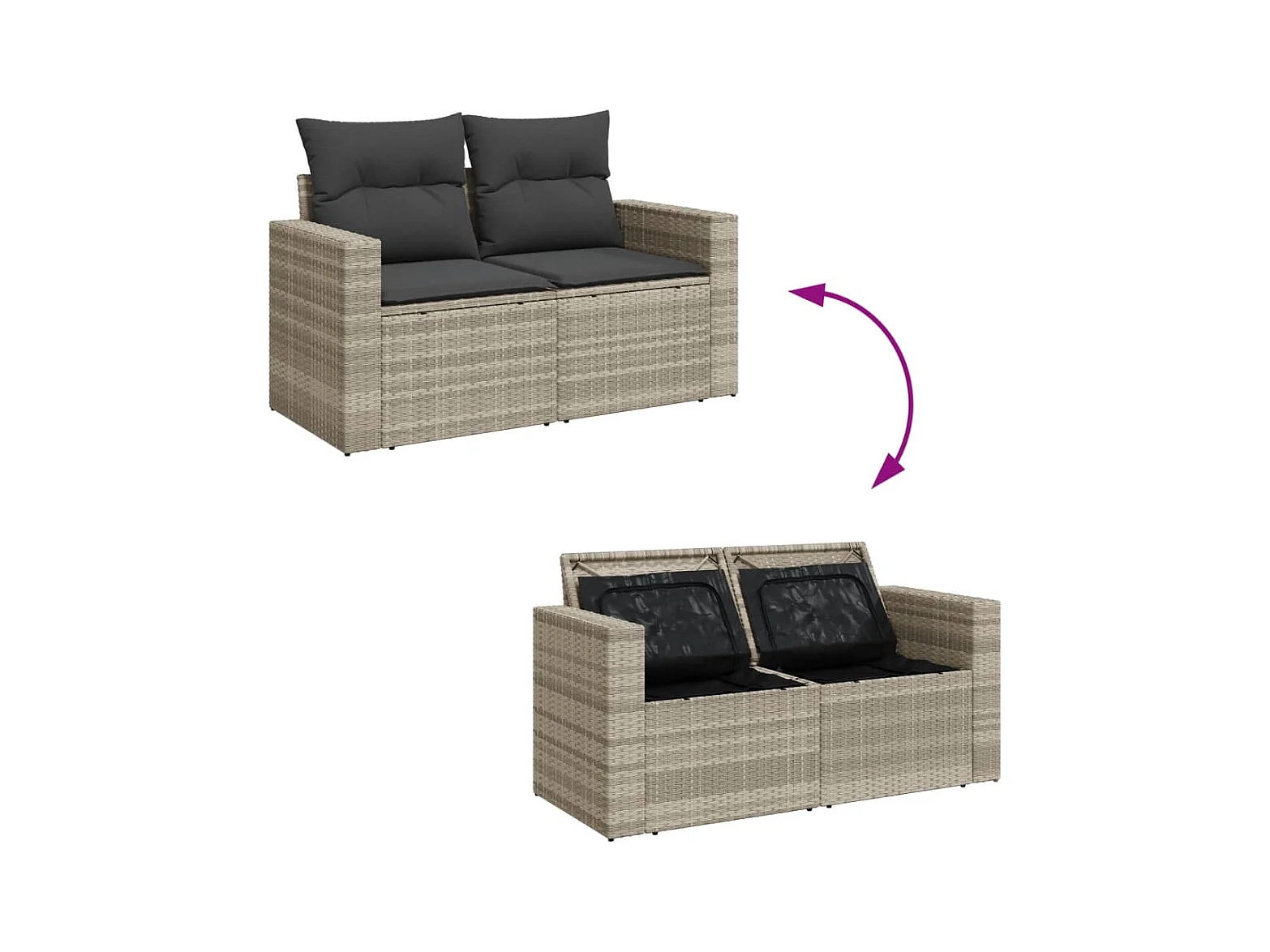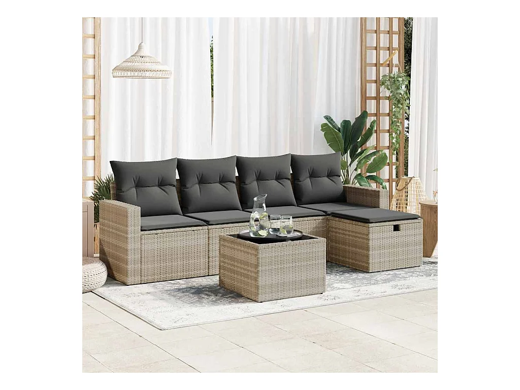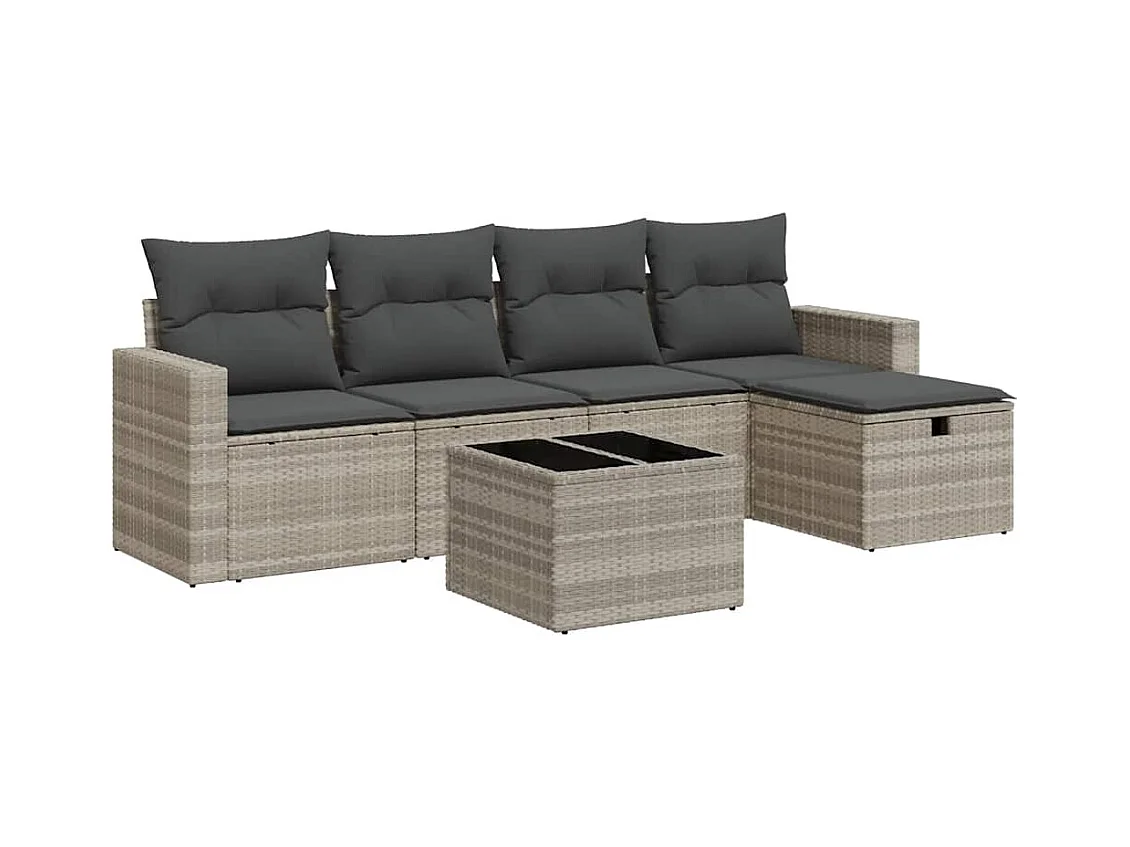 6-tlg. Garten-Sofagarnitur mit Kissen Hellgrau Poly Rattan