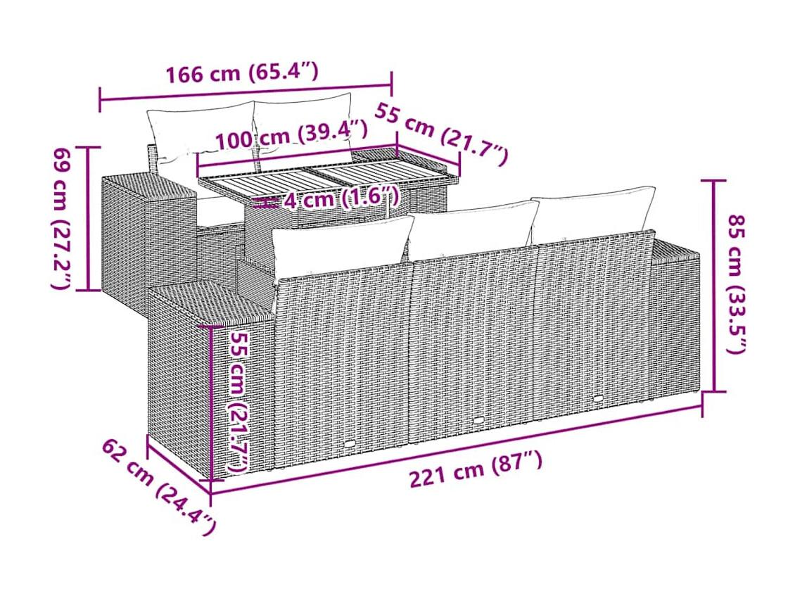 6-tlg. Garten-Sofagarnitur mit Kissen Schwarz Poly Rattan