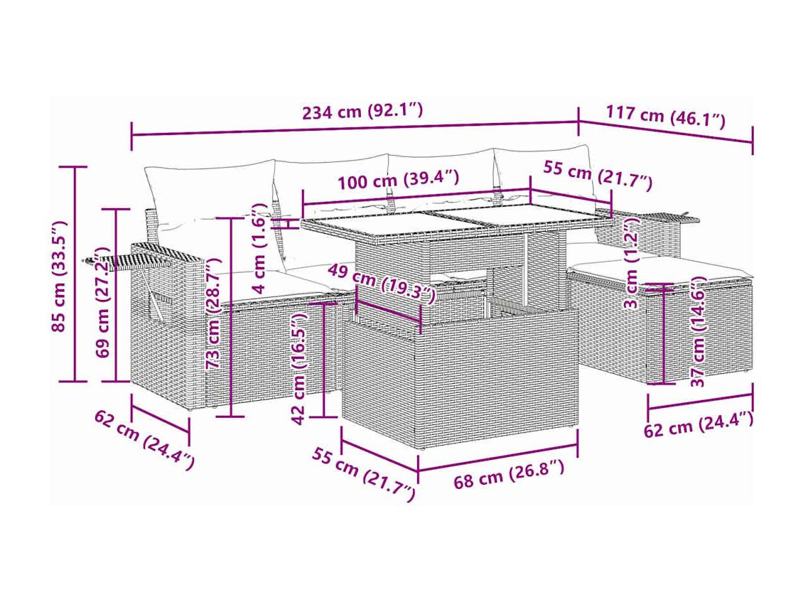 6-tlg. Garten-Sofagarnitur mit Kissen Schwarz Poly Rattan