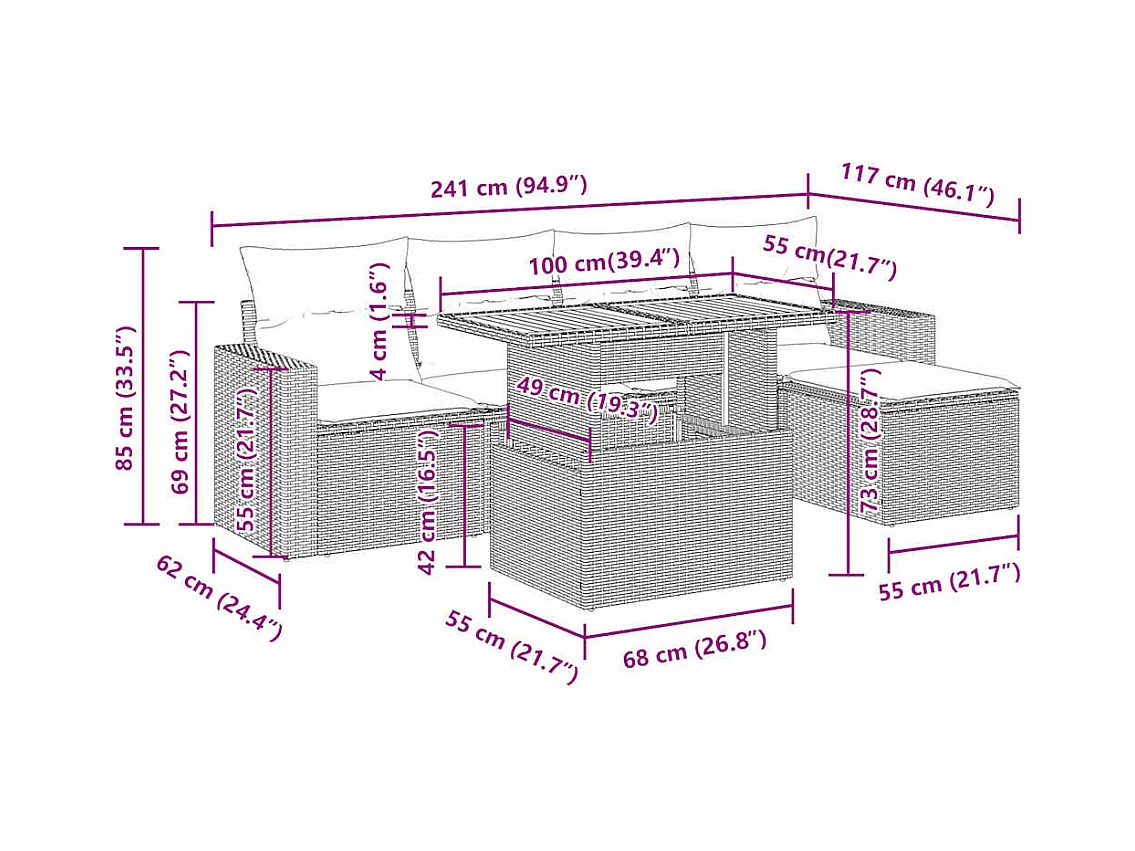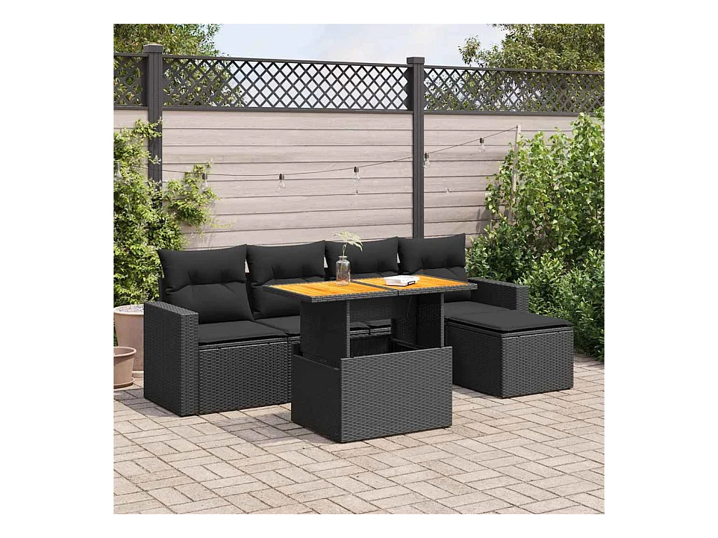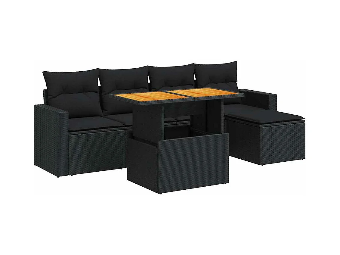 6-tlg. Garten-Sofagarnitur mit Kissen Schwarz Poly Rattan