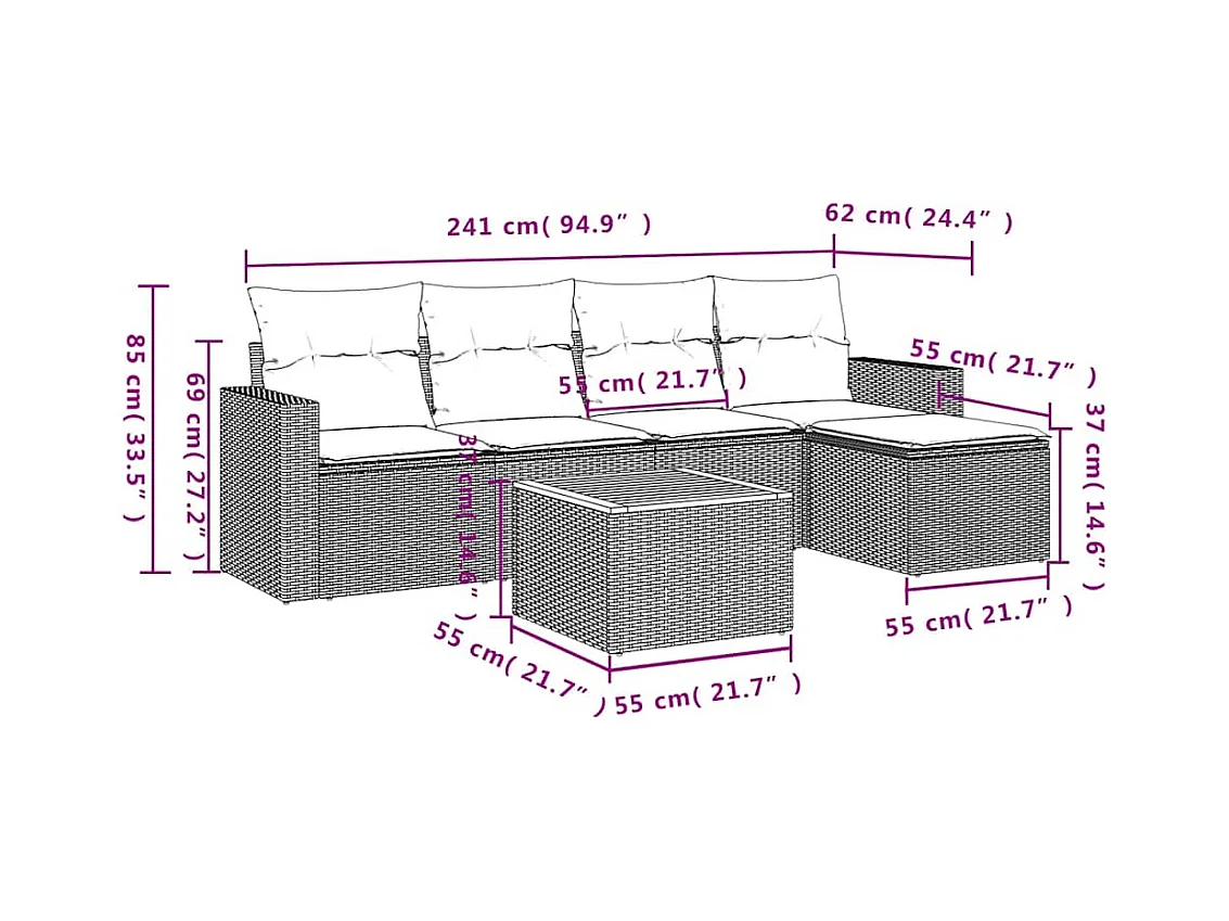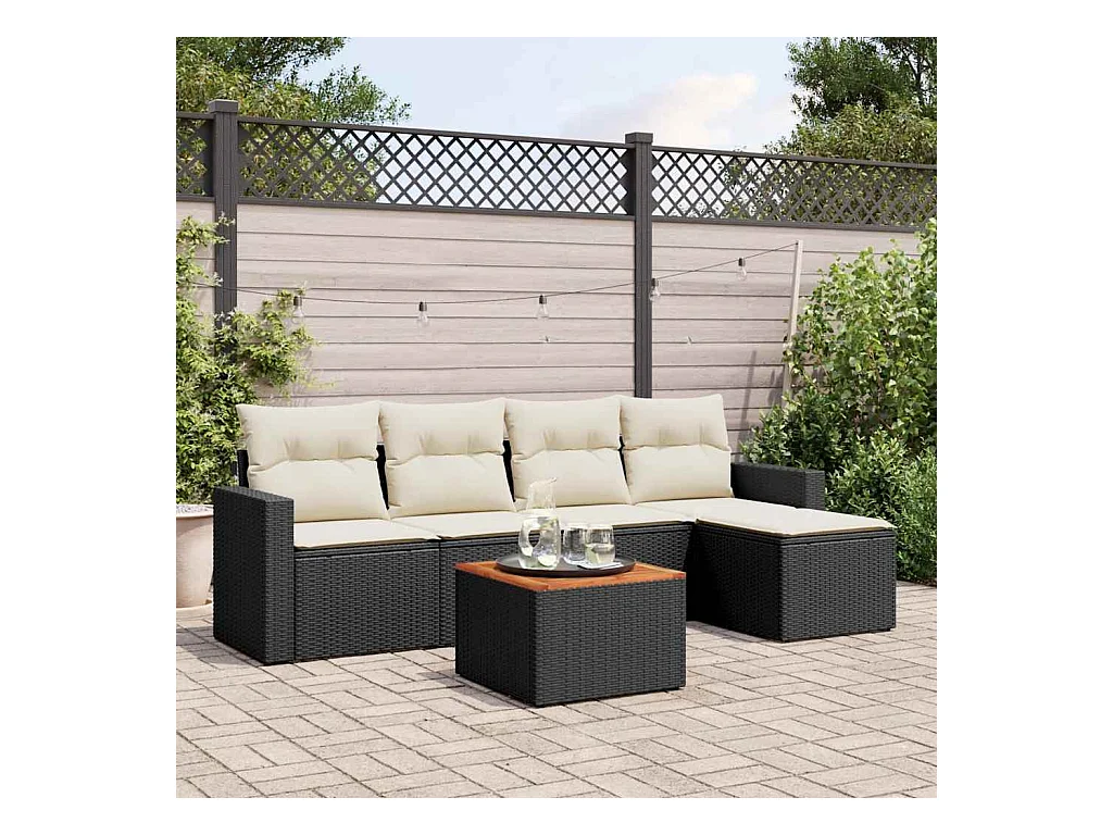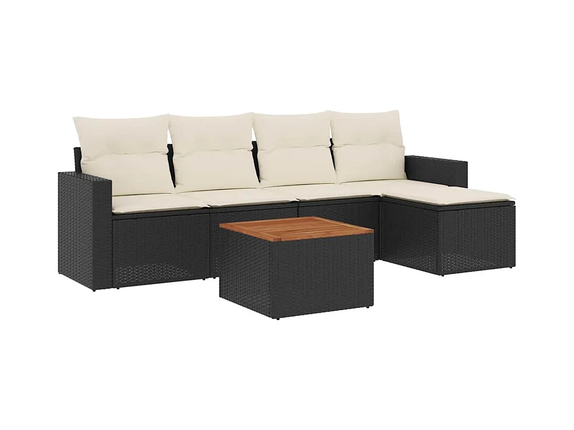 6-tlg. Garten-Sofagarnitur mit Kissen Schwarz Poly Rattan