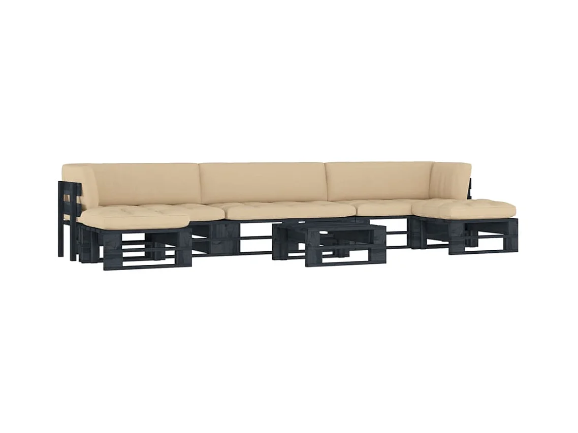 6-tlg. Paletten-Lounge-Set Schwarz Imprägniertes Kiefernholz