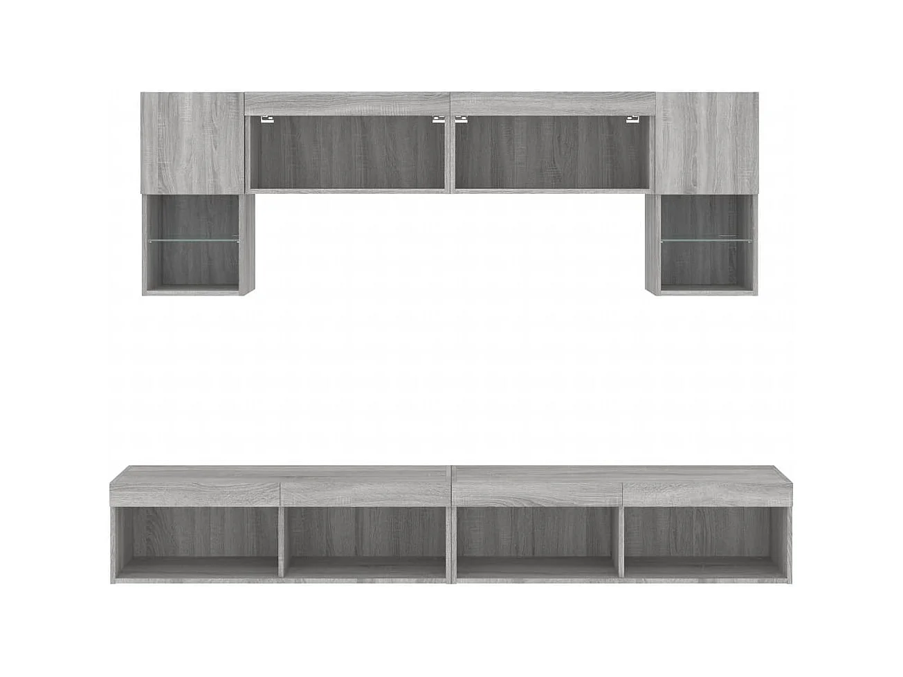 6-tlg. Wohnwand mit LED-Beleuchtung Grau Sonoma Holzwerkstoff