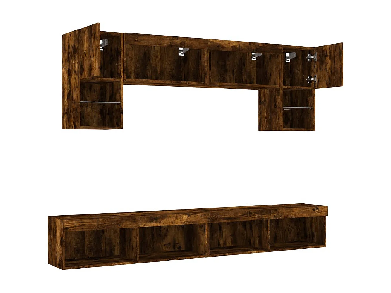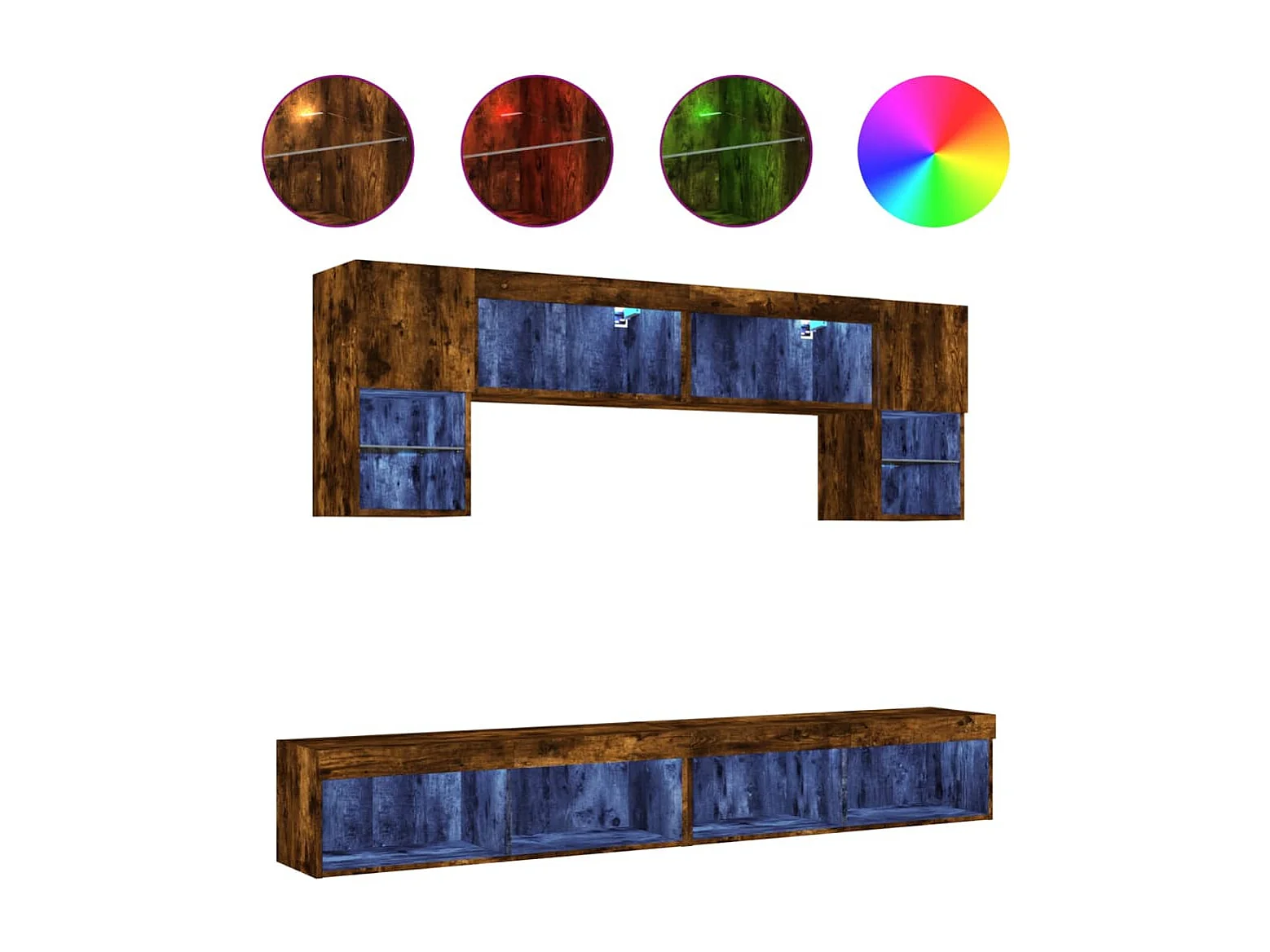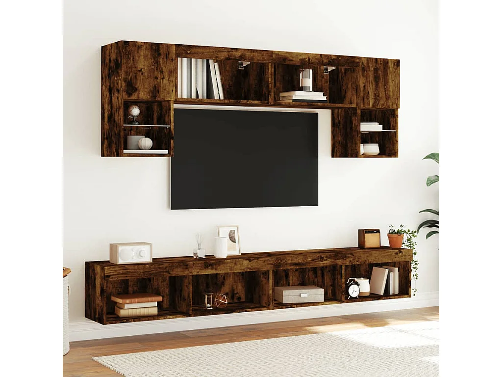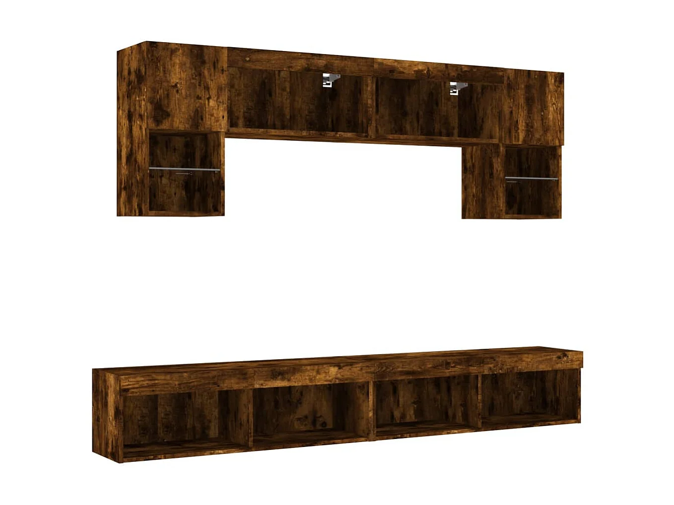 6-tlg. Wohnwand mit LED-Beleuchtung Räuchereiche Holzwerkstoff