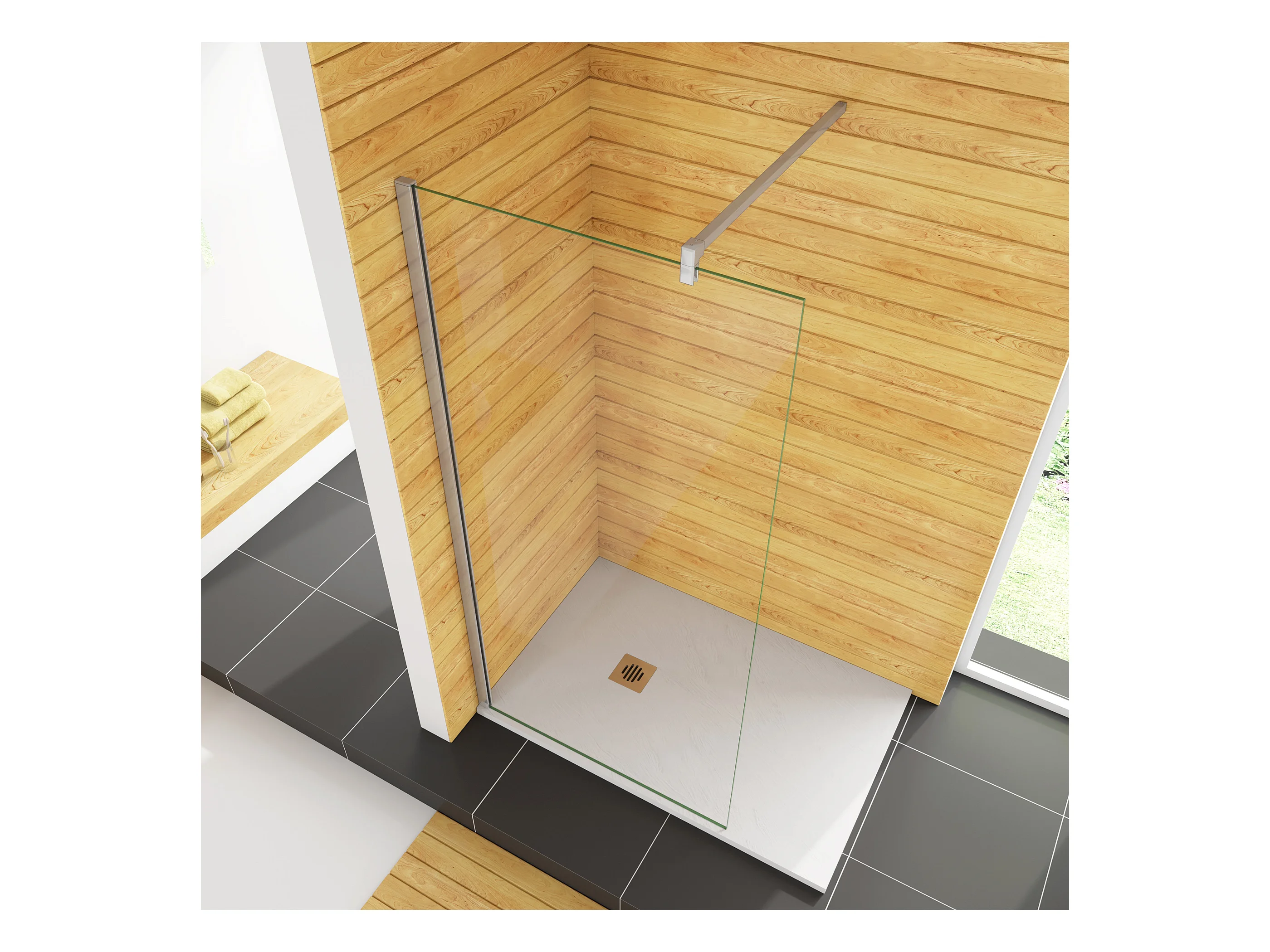 60x200cm+F Form: 90cm Stabilisator 8mm Nano Sicherheitsglas Walk in Duschwand Duschabtrennung Höhe 200cm