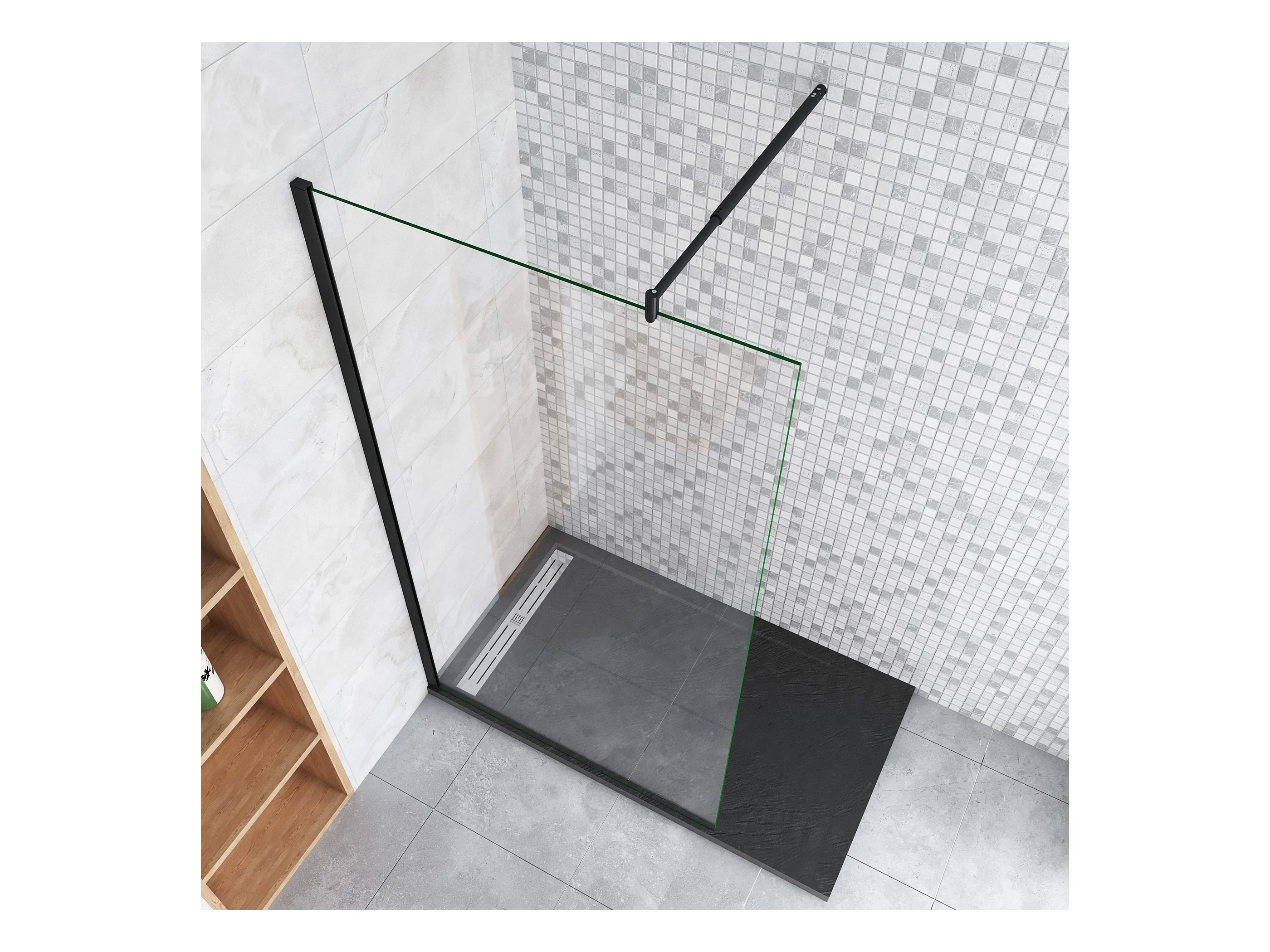 60x200cm Schwarzrahmen Walk in Duschkabine Duschwand +70-120cm Stabilisator 10mm NANO ESG-Glas Duschabtrennung Duschtrennwand