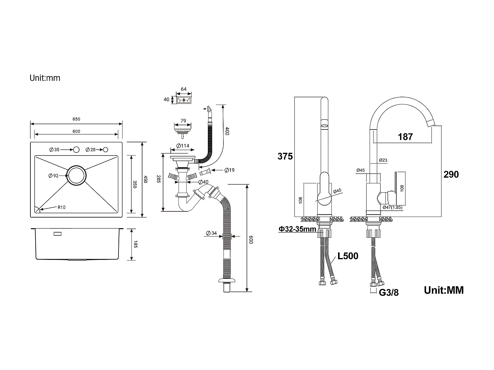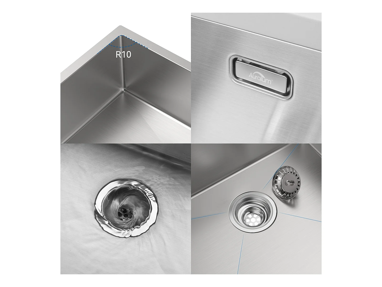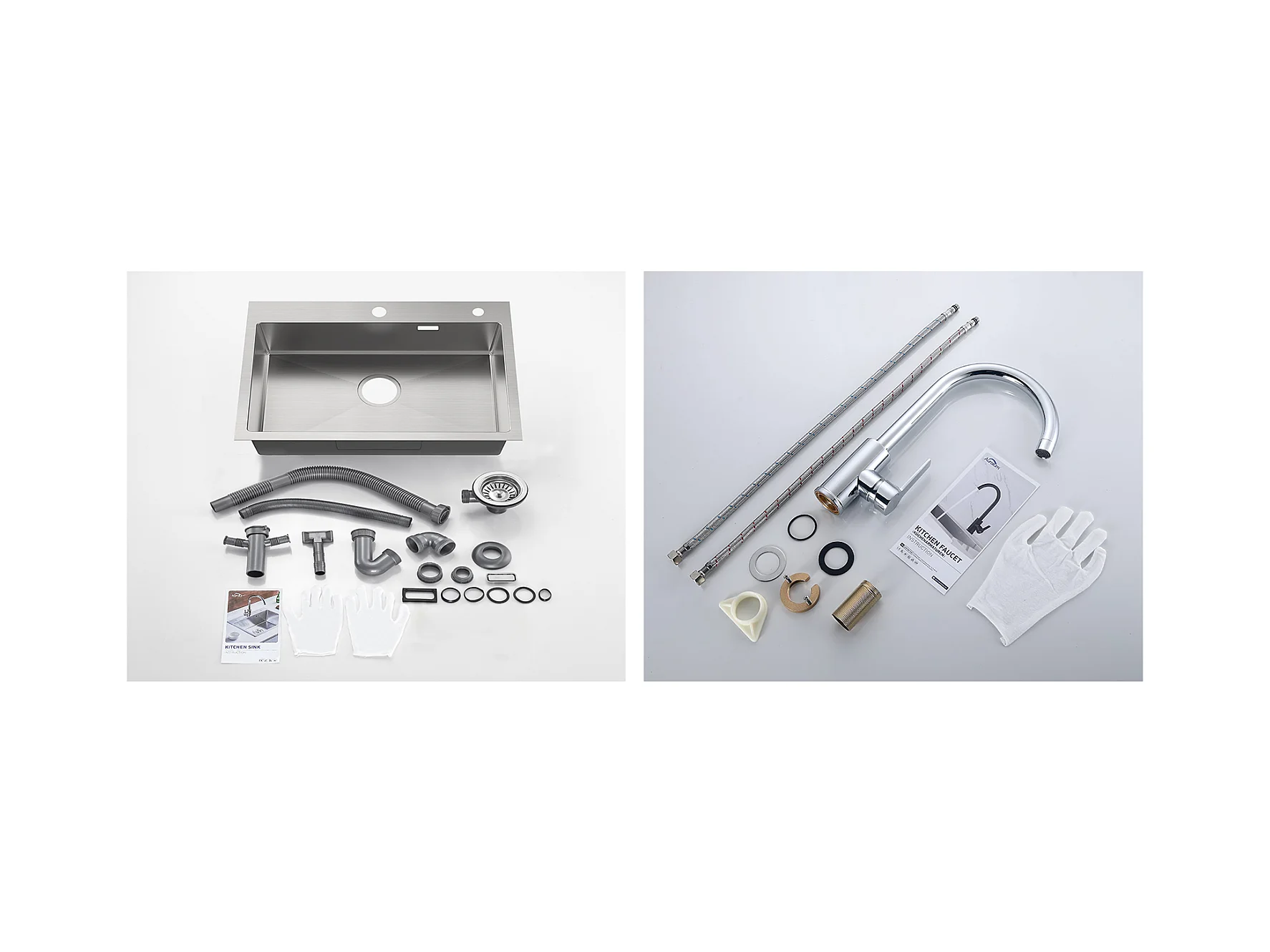 65 x 45 cm Küchenspüle aus gebürstetem Edelstahl mit Einzelbecken, Einbau-/Aufputzmontage + 360° schwenkbarer Küchenhahn mit Warm-/Kaltwasser, Chrom