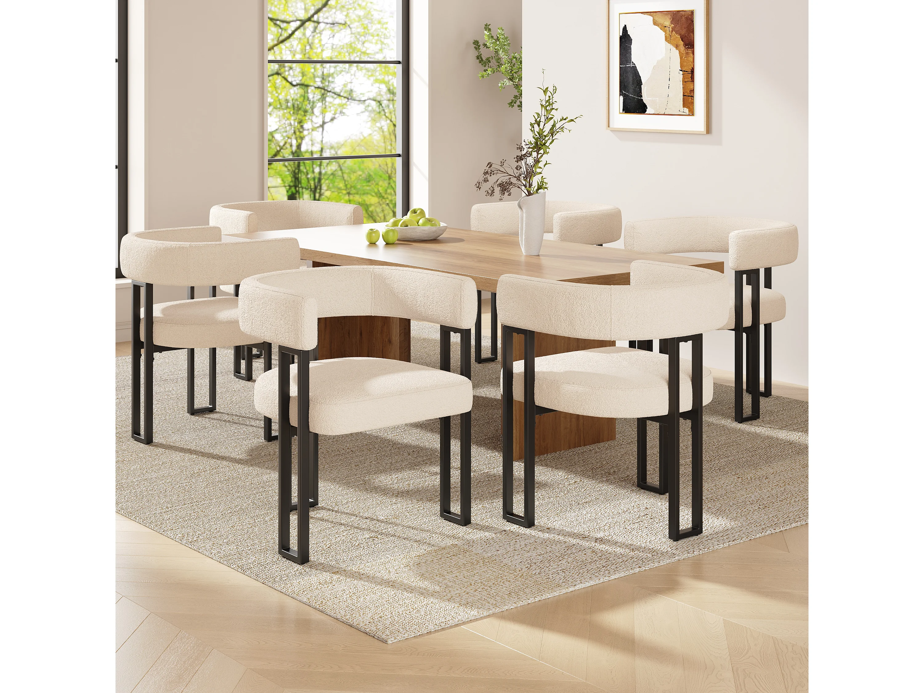6er-Set Esszimmerstühle - 54 x 51,5 x 72 cm - geschwungene Rückenlehne - Stoff + Metall - beige
