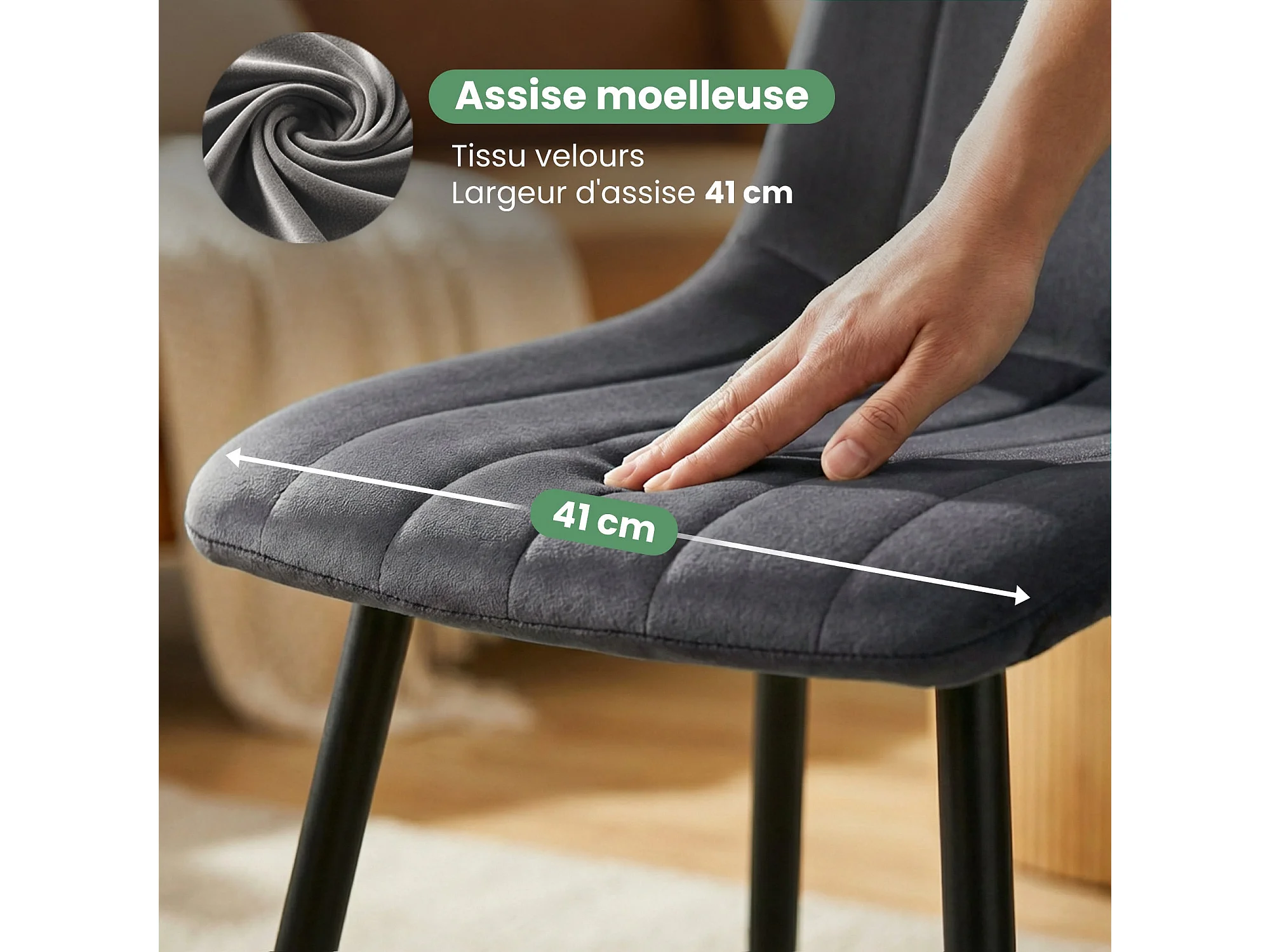 6er Set Samt-Polsterstühle, gesteppt LIVO Dunkelgrau mit schwarzen Beinen
