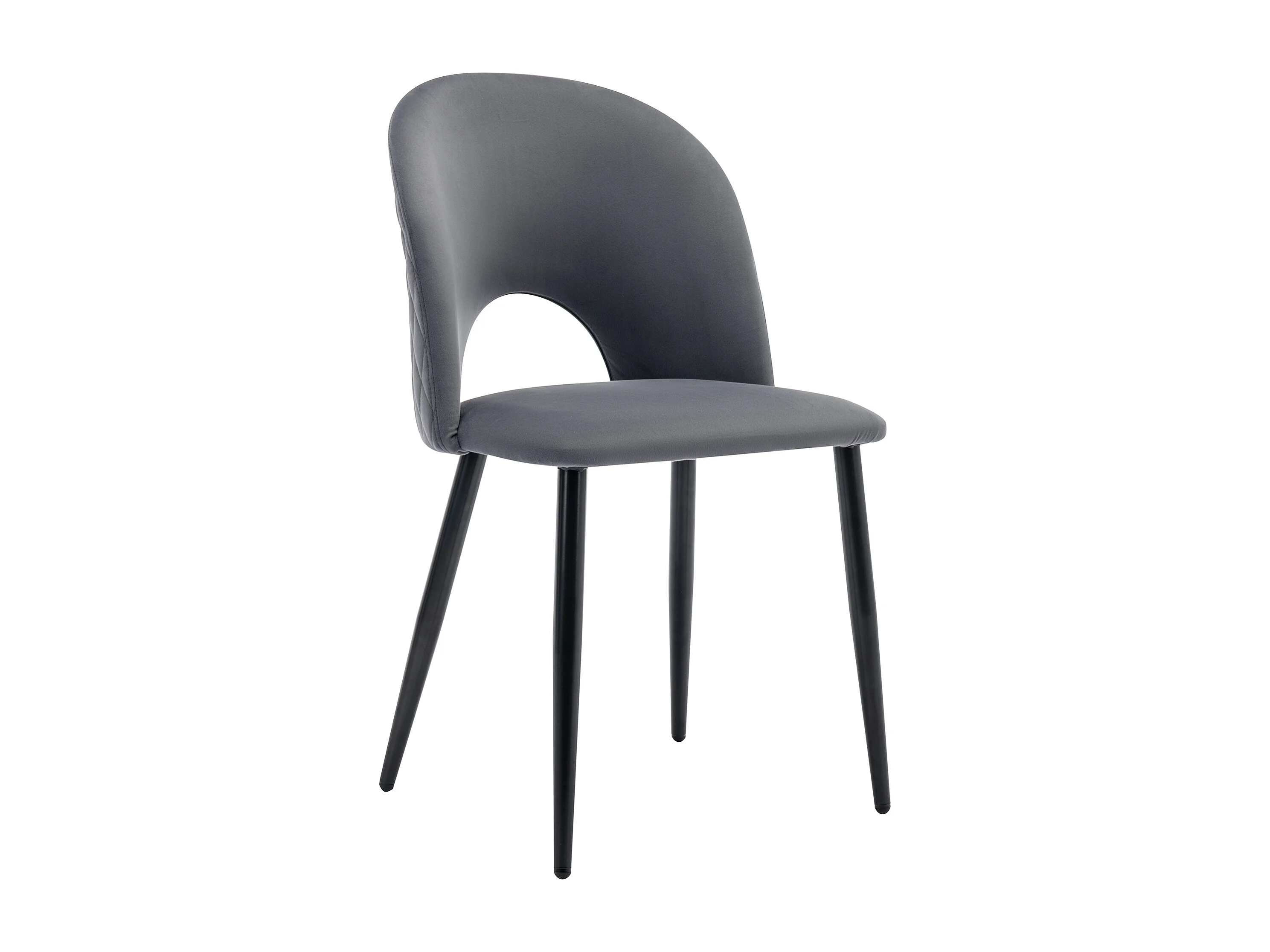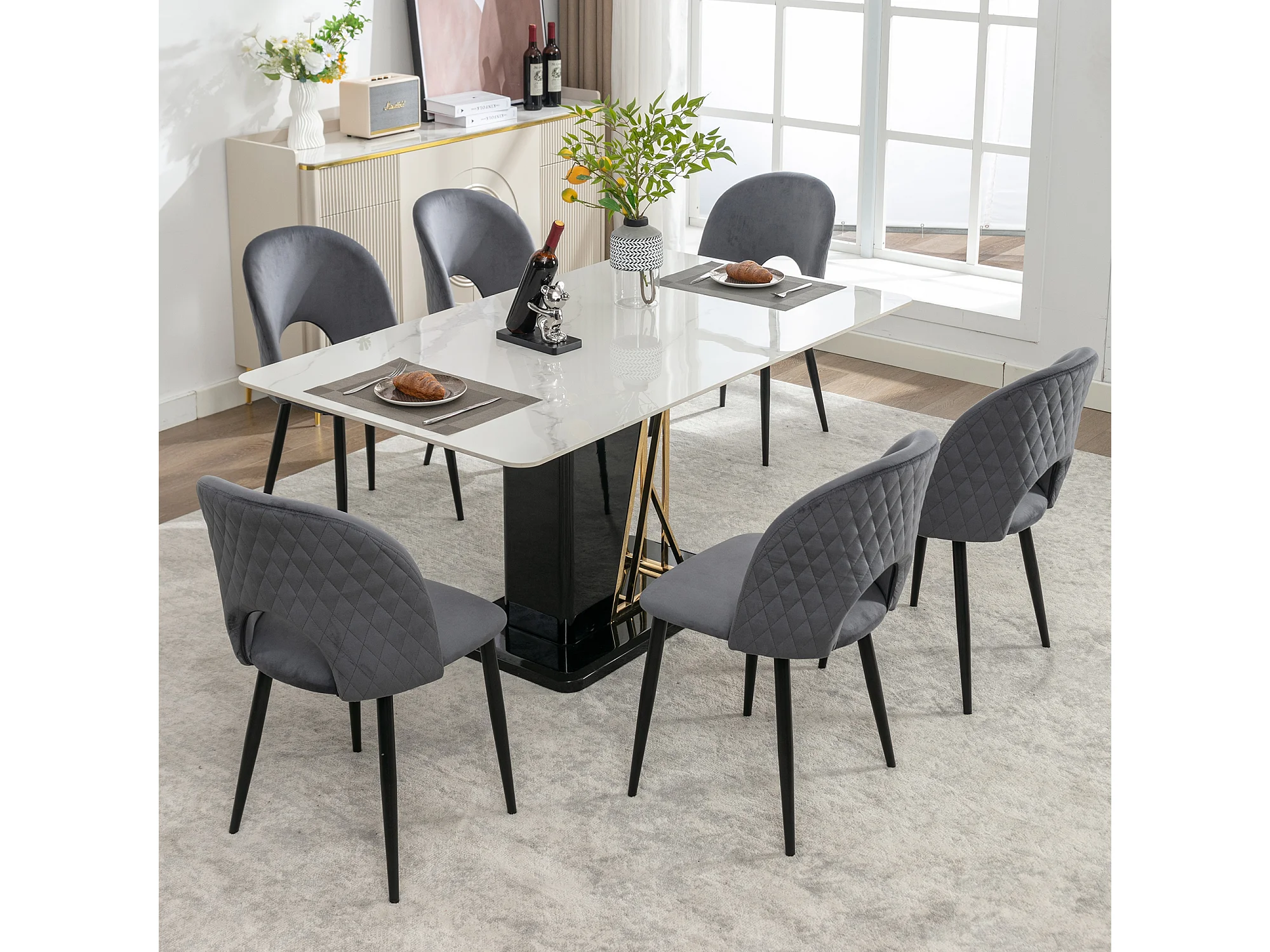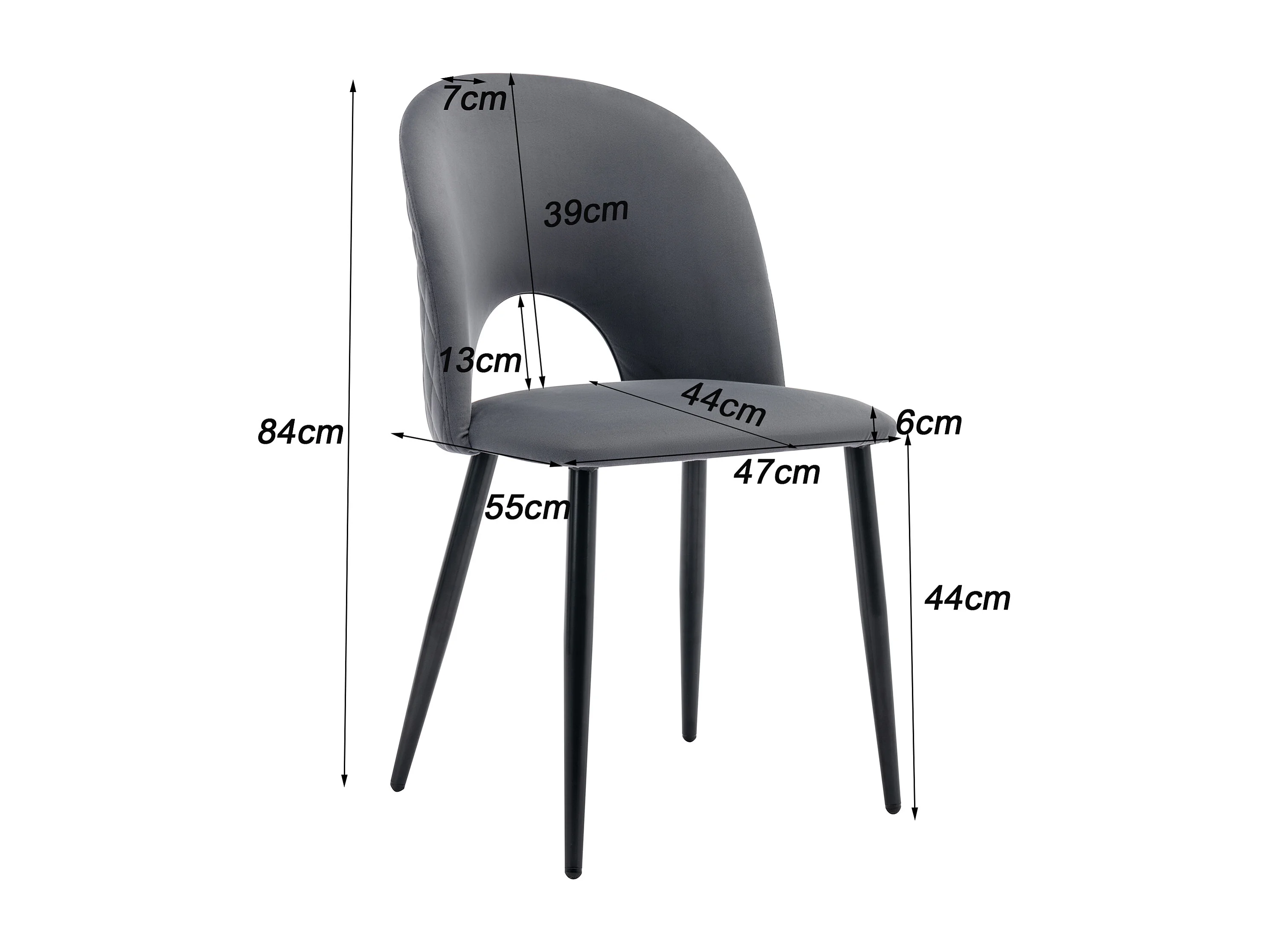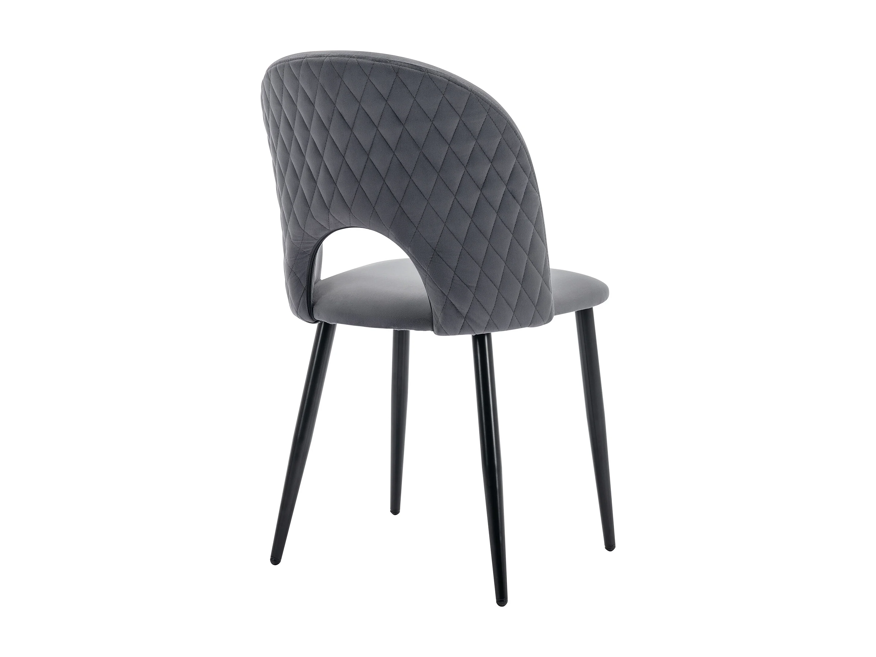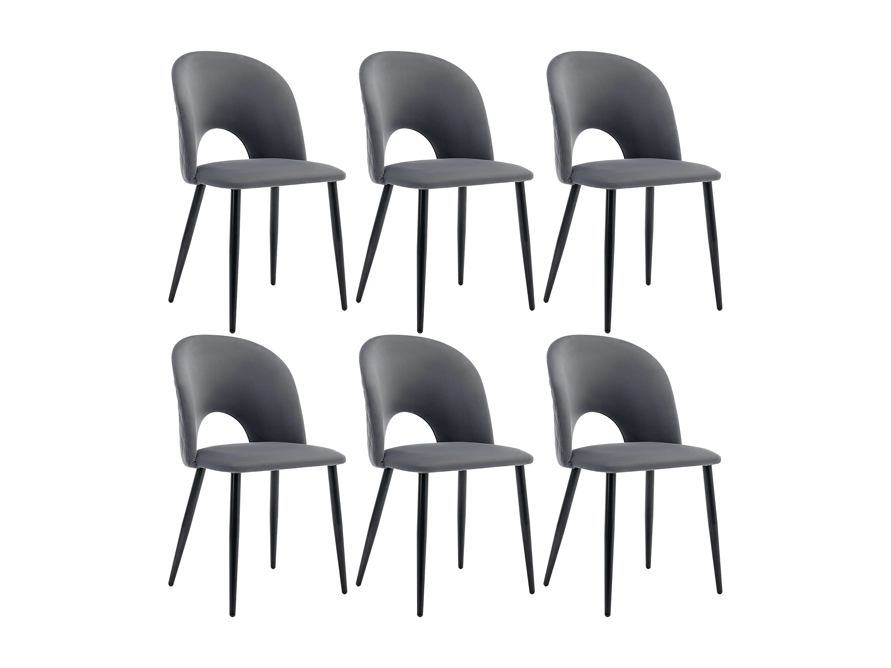 6er-Set Samtstühle, gepolsterte Sitzfläche, Metallgestell, verstellbare Füße, Rautenmuster – Grau