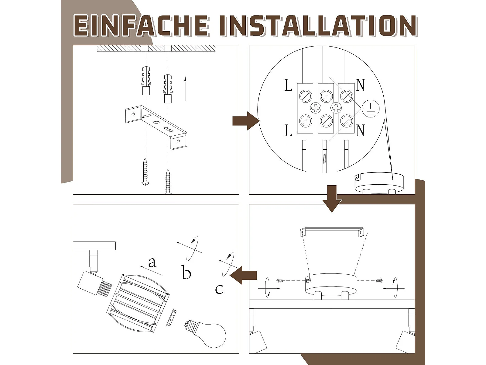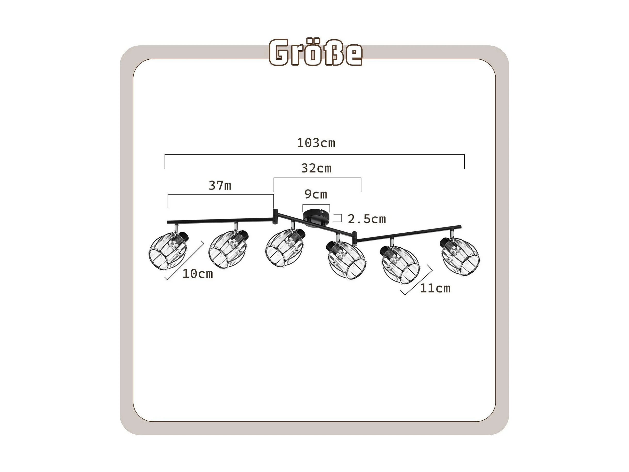 6er Vintage Schwarz Kristall Deckenstrahler E14 für Industrie Flur 350° Schwenkbar