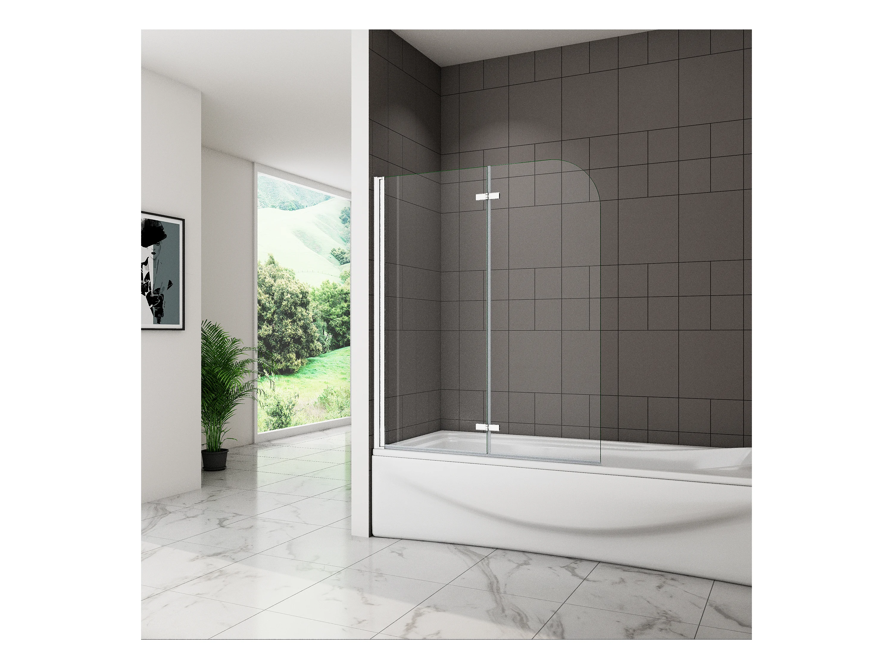 6mm 3-teilig chrom Duschwand Trennwand Faltwand