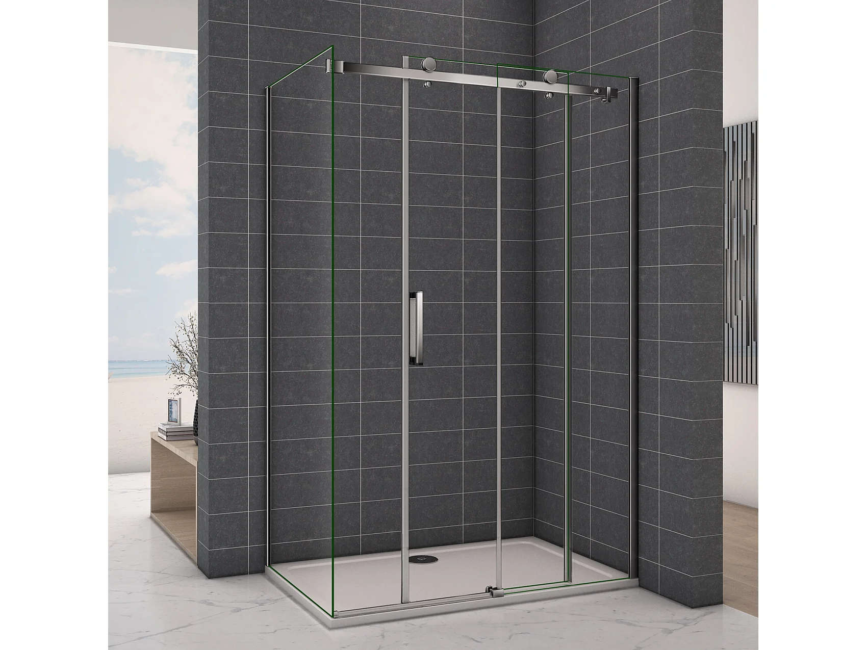 6mm Sicherheitsklarglas Nischentür Schiebetür Gleittür Dusche Duschabtrennung Duschkabine 80X145cm