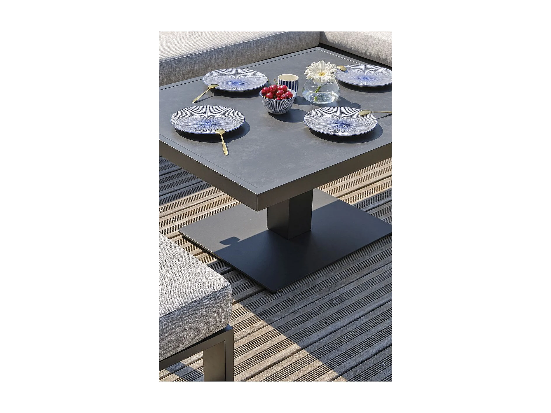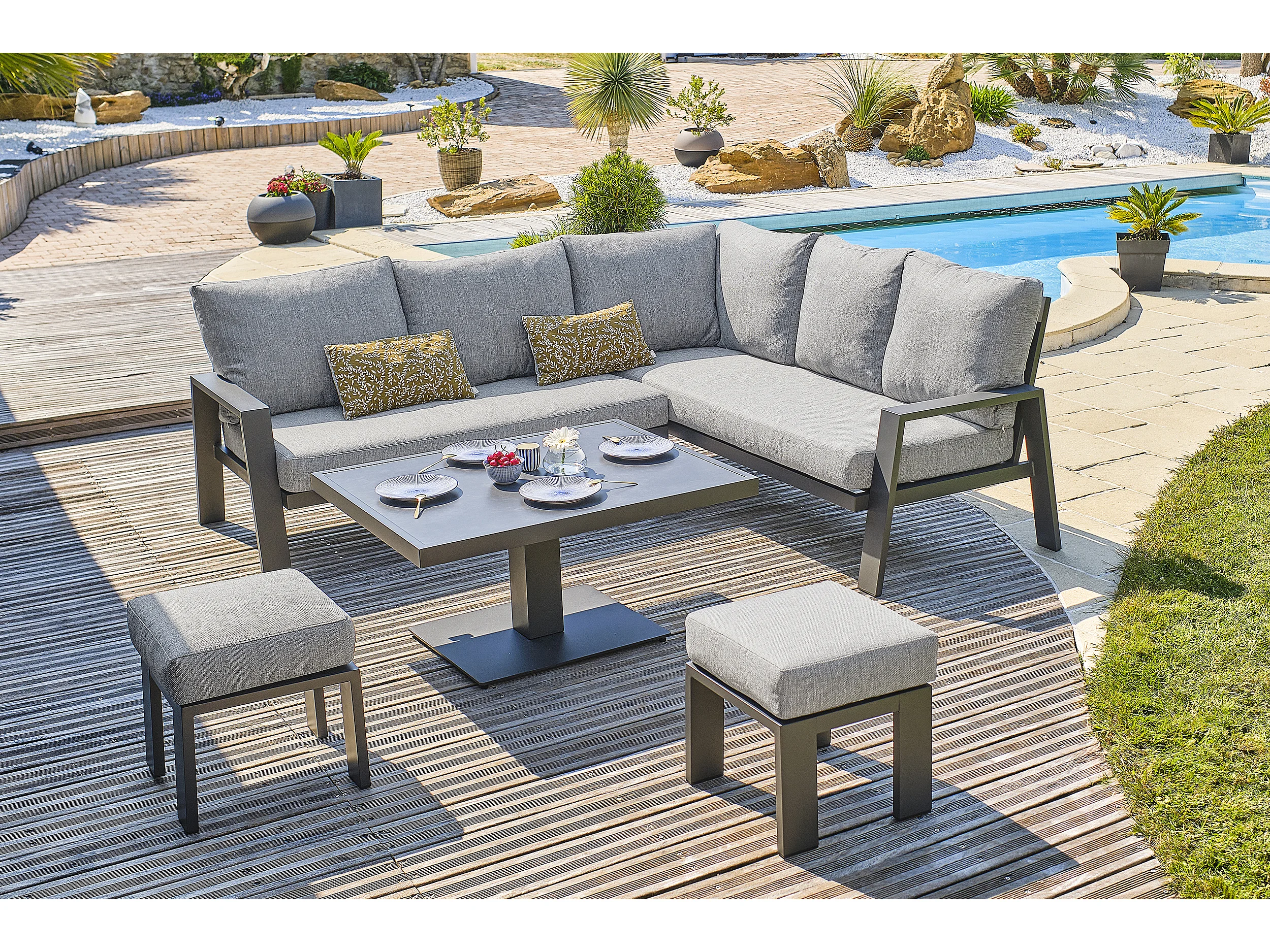 7-Sitzer-Garten-Essgruppe aus Aluminium mit Keramikplatte auf Glas