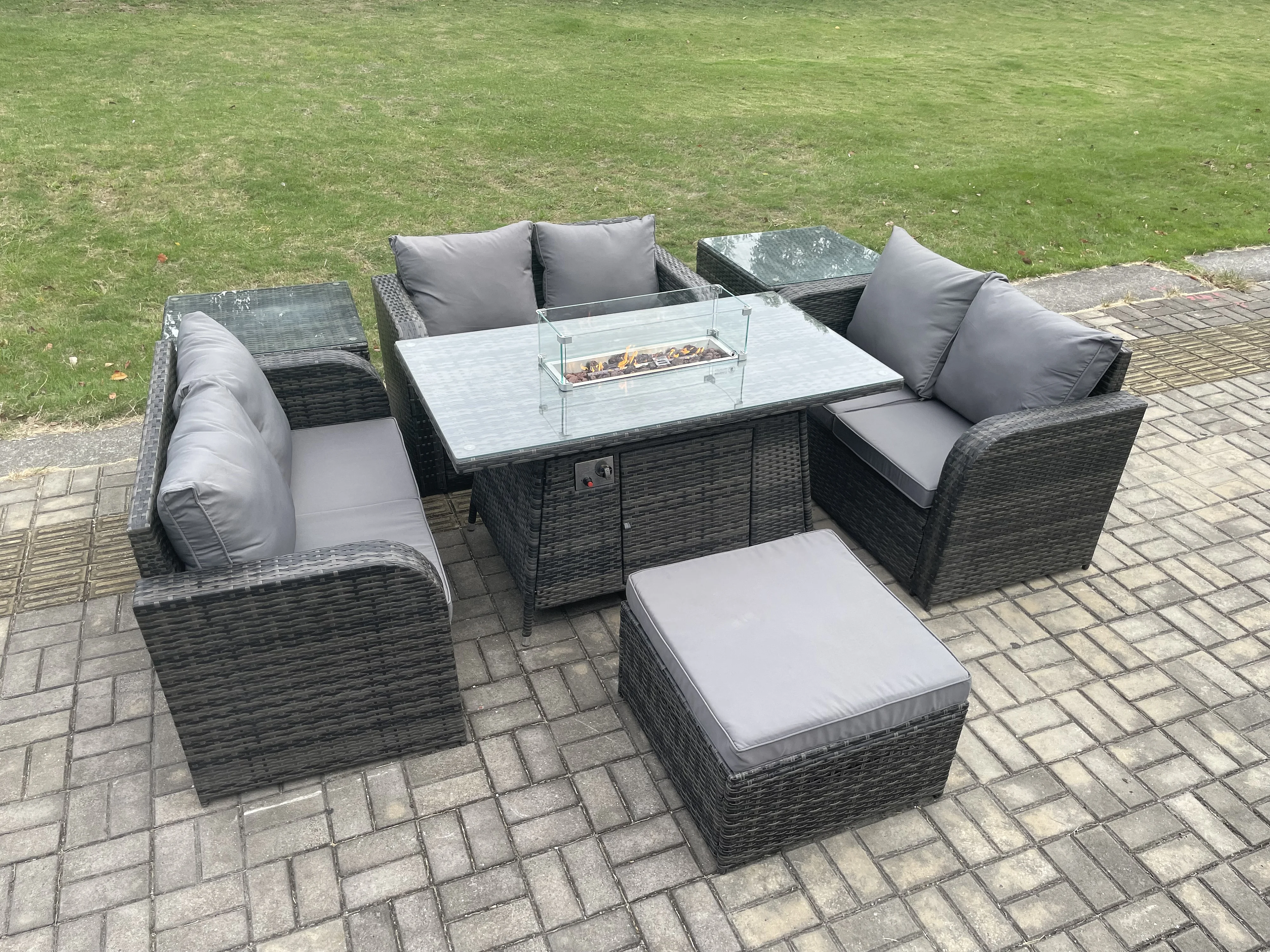 7-Sitzer Gartenmöbel im Freien Polyrattan Dunkelgrau