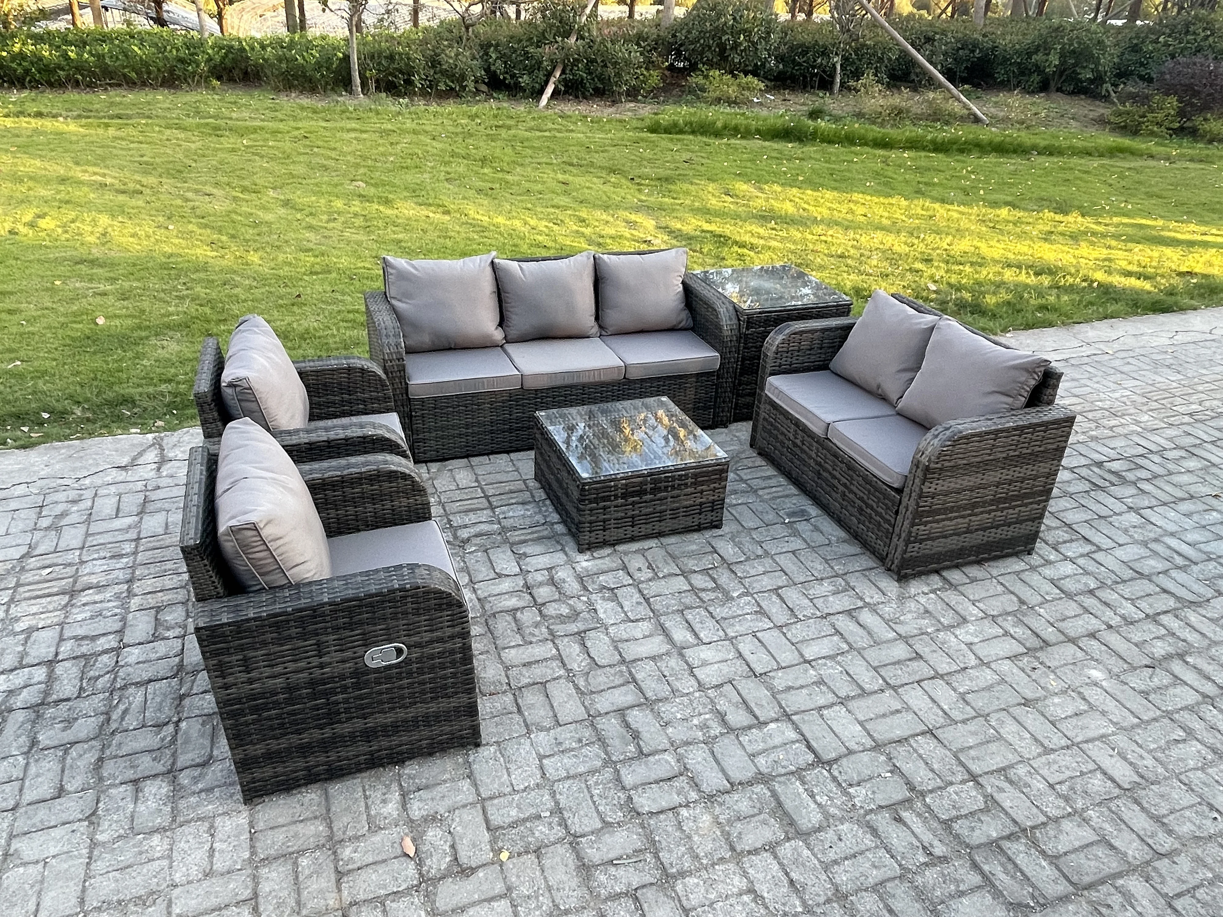 7-Sitzer Gartenmöbelset Rattan Garten Sofa im Freien Sessel mit Gehärteter Glastisch Beistelltisch Dunkelgrau Gemischt