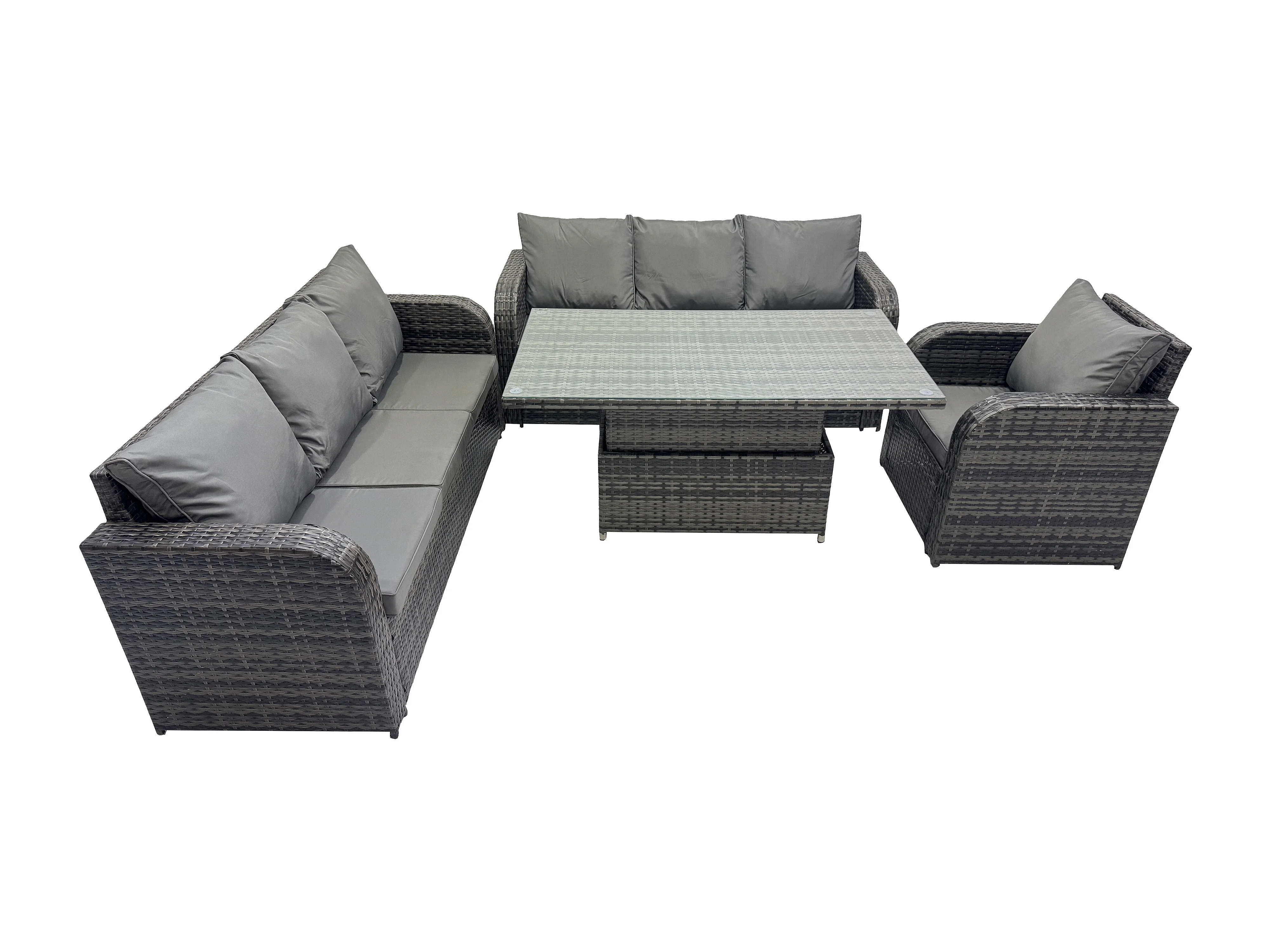 7-Sitzer Outdoor Polyrattan Gartenmöbel Sets höhenverstellbarer Tisch Sofa Set mit Liegestühle Dunkelgrau Gemischt