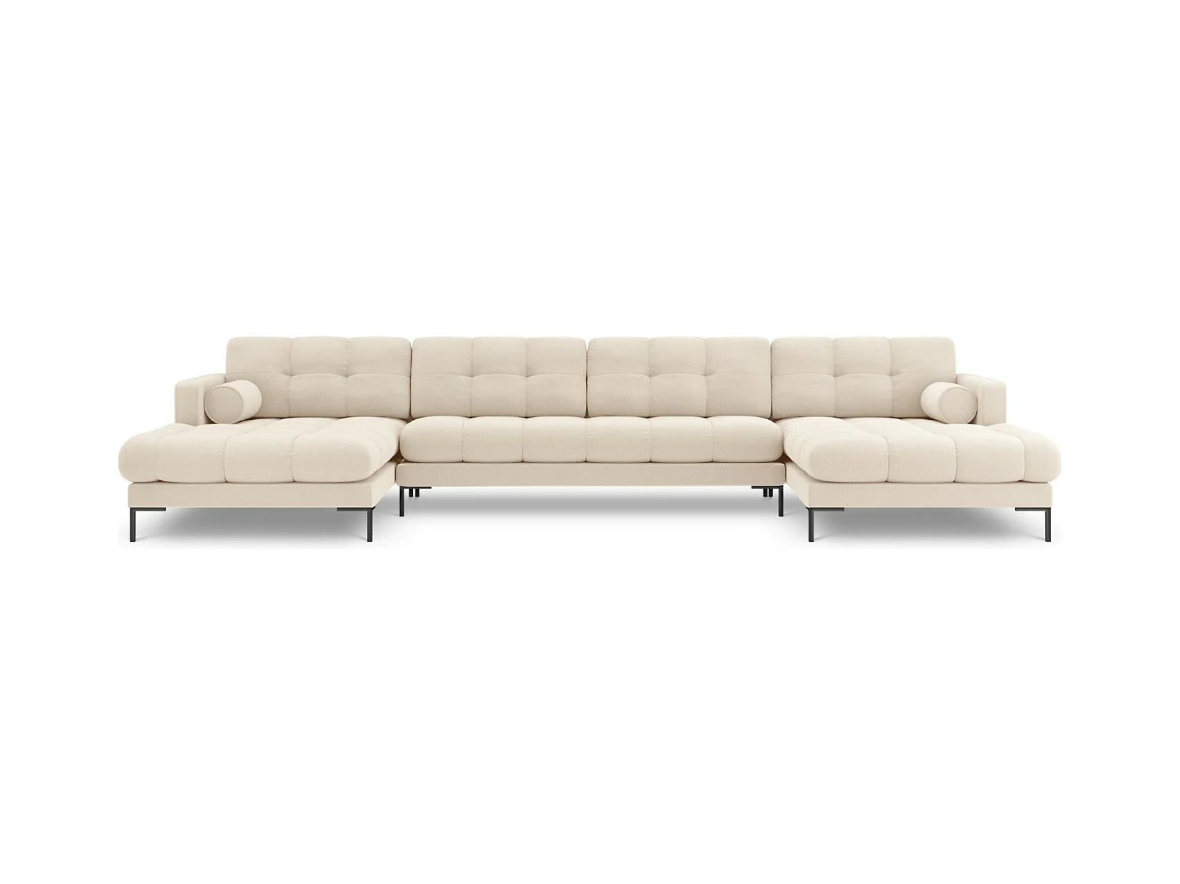 Cosmopolitan Design - 7-Sitzer Panoramasofa "Bali" aus strukturiertem Stoff leichtes beige - 383x185x75cm