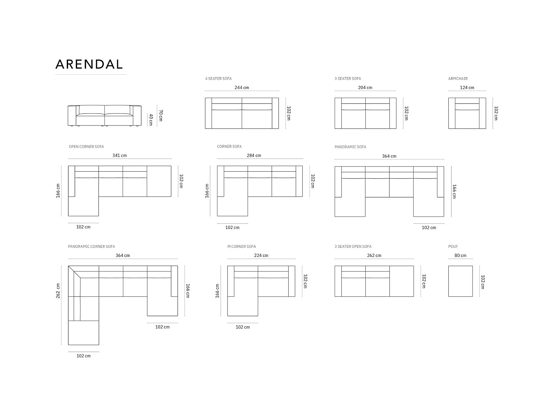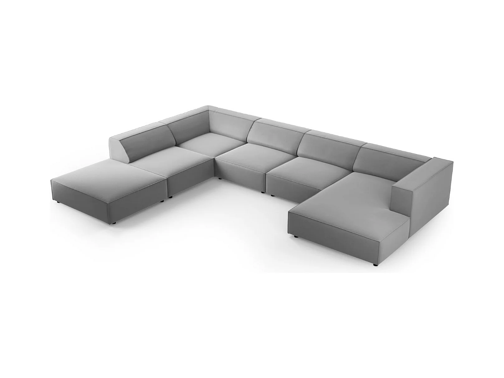 Cosmopolitan Design - 7-Sitzer Panoramasofa links "Arendal" aus Samt hellgrau - 364x262x70cm