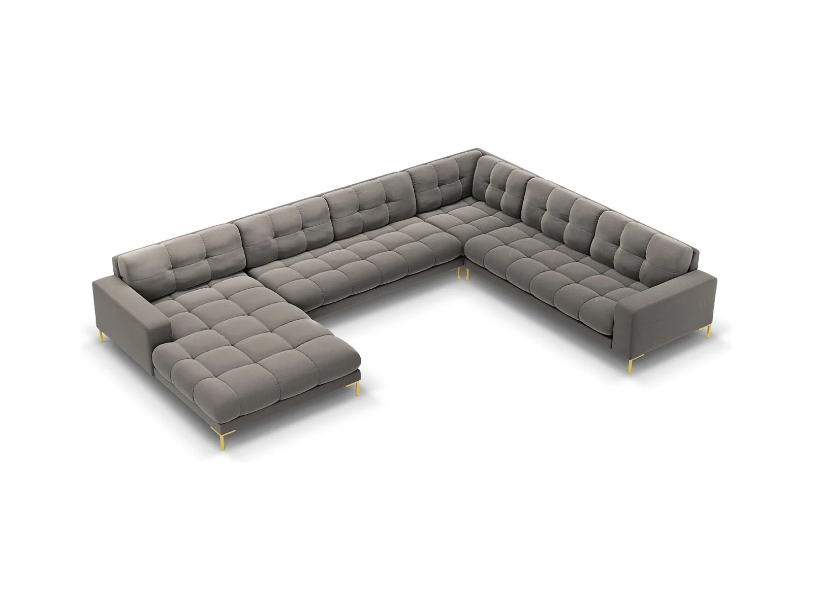 Cosmopolitan Design - 7-Sitzer Panoramasofa rechts "Bali" aus Samt hellgrau - 327x256x75cm