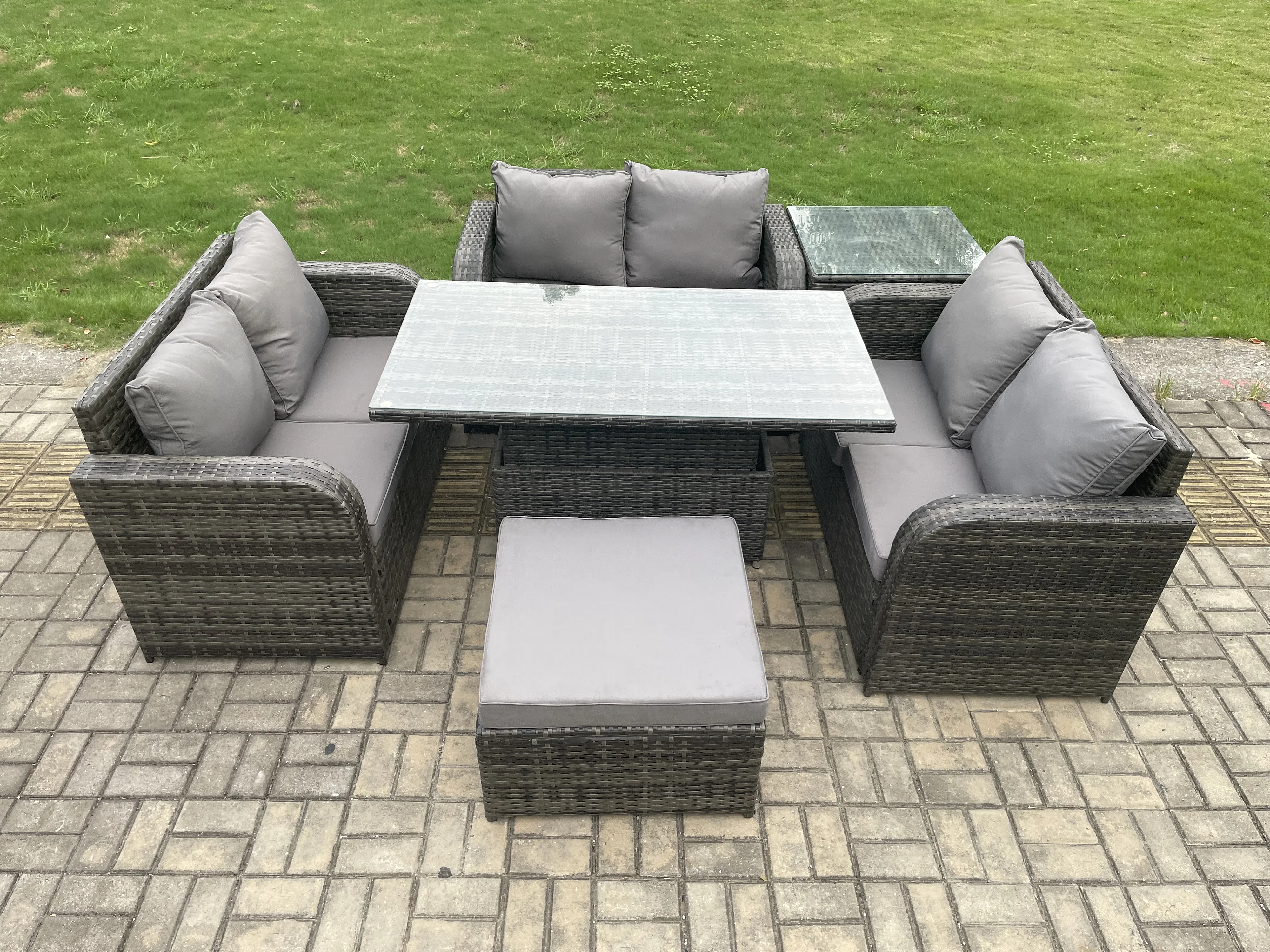 7-Sitzer Polyrattan Gartenmöbel Set mit Esstisch Hocker Sofa