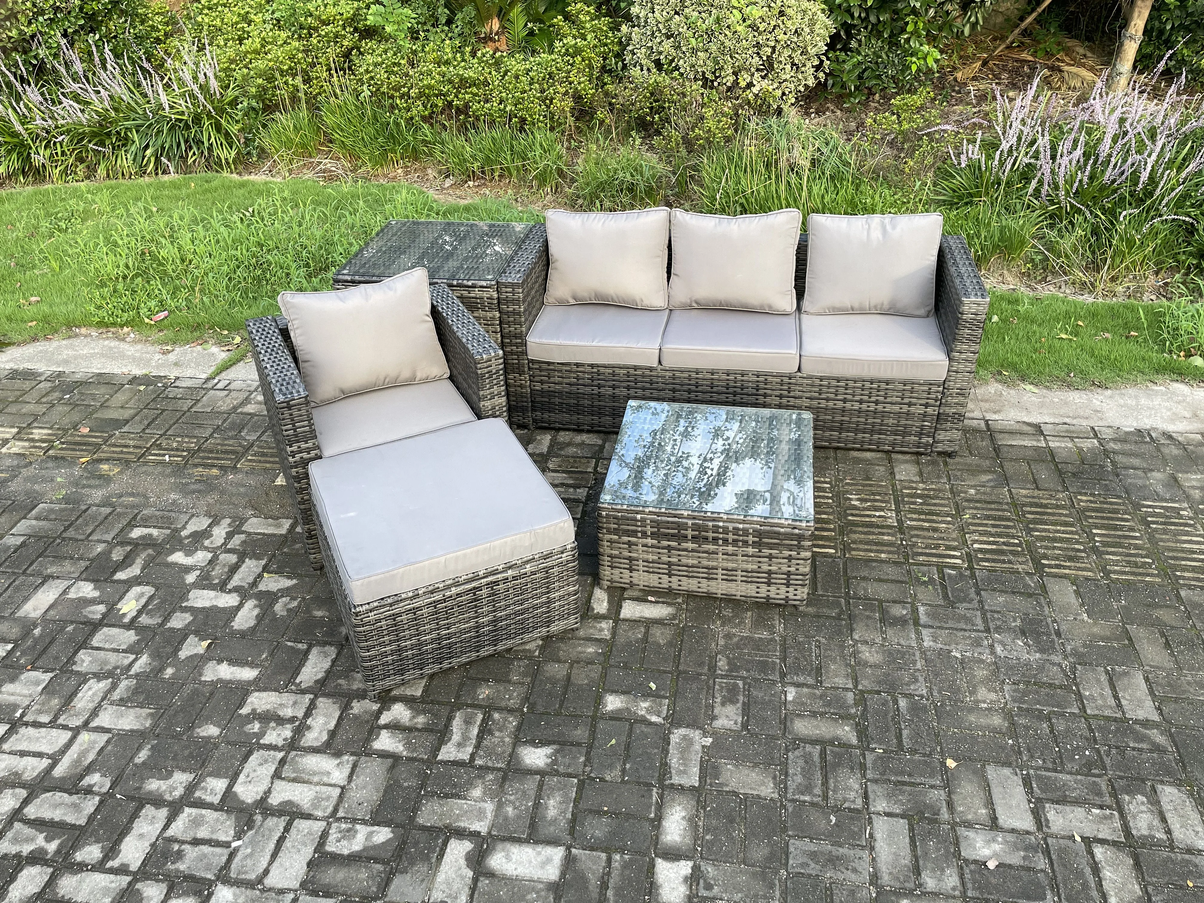 7-Sitzer Polyrattan Gartenmöbelset mit Beistelltisch Dunkelgrau