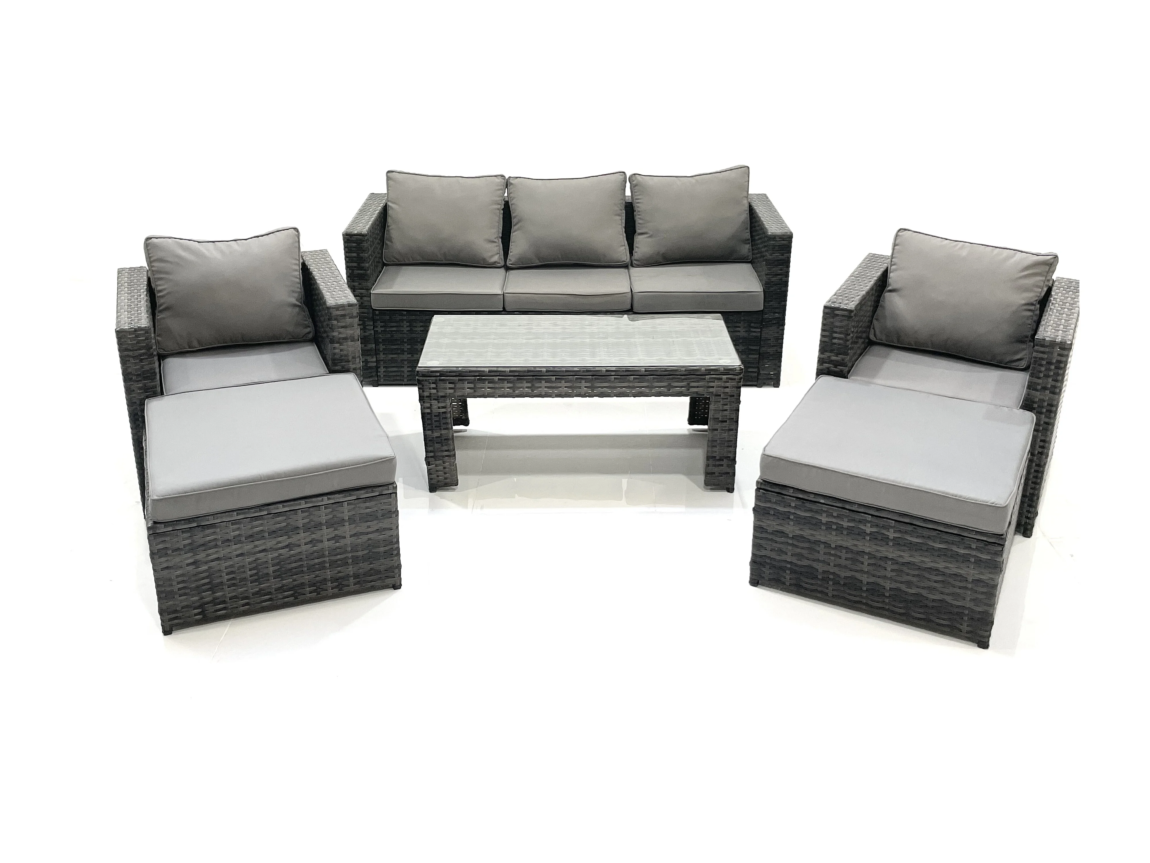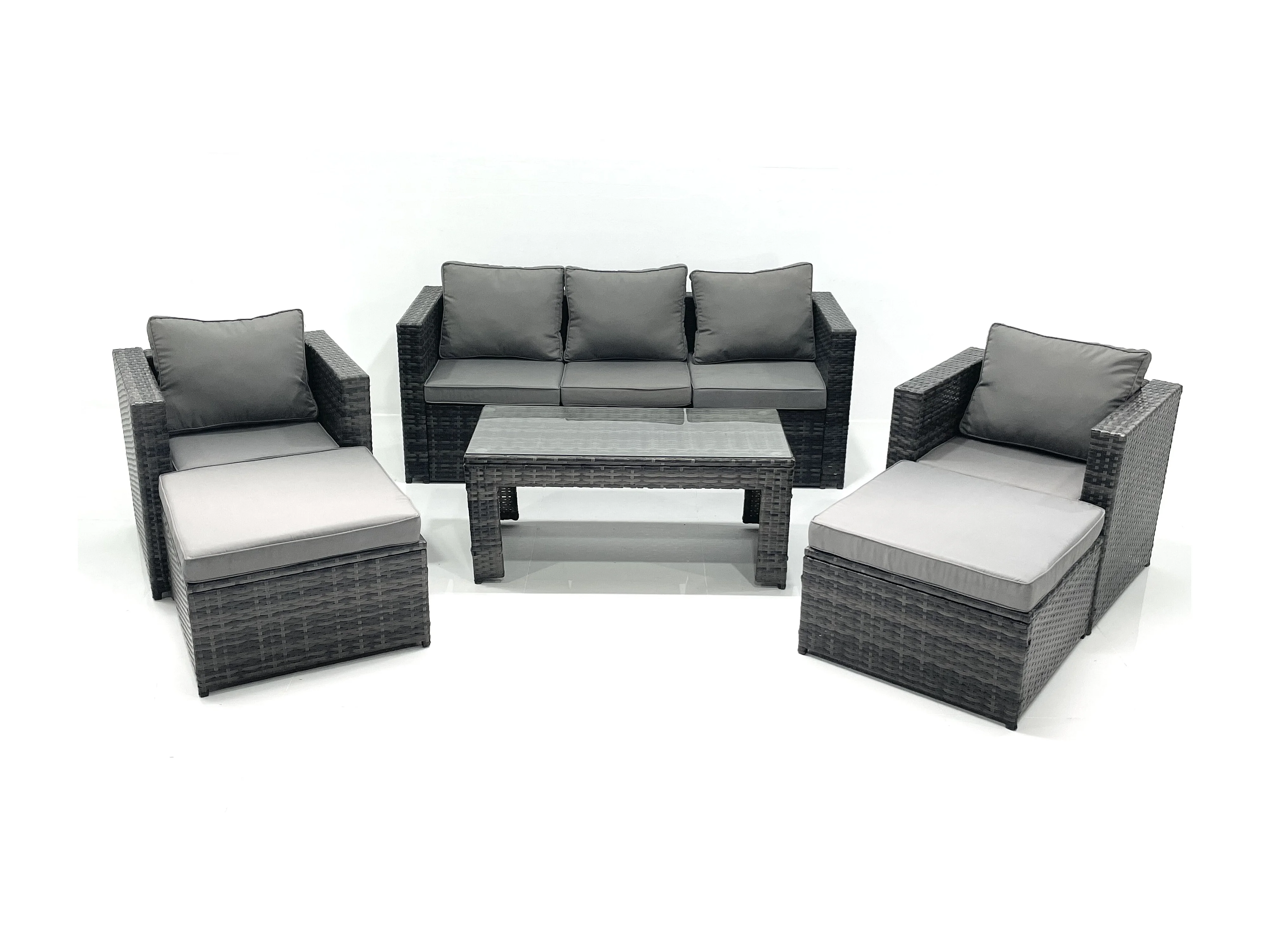 7-Sitzer Polyrattan Gartensofa Set Couchtisch 2 Sessel 2 hohen Hockern Dunkelgrau Gemischt